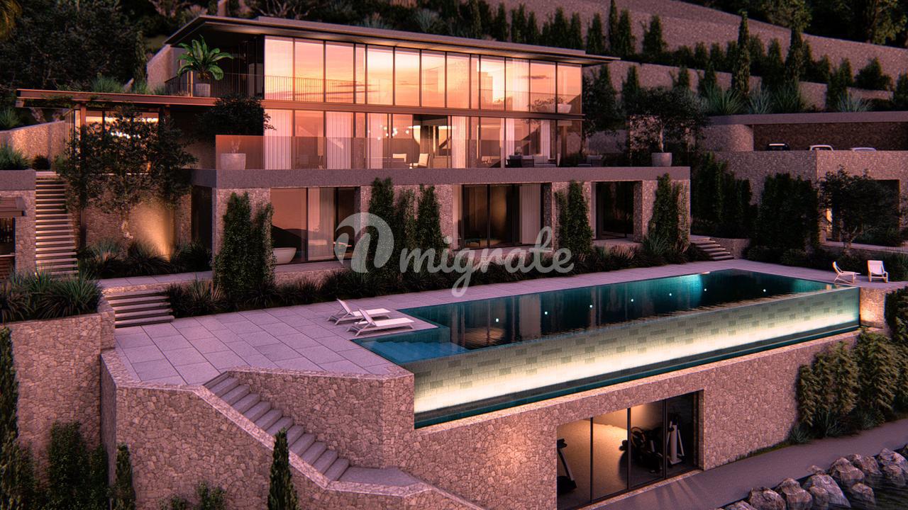 Частный особняк с бассейном и садом с видом на море и остров в Ялыкавак, Бодрум. Особняк состоит из трех частей: 1 – Главный дом 2 – Гостевой дом 3 – Пристройка (рядом с главным домом). В комплексе 11 особняков. Характеристики: Тренажерный зал, сауна, хаммам, камин, лифт, высокие потолки, пол с подогревом, система отопления и охлаждения VRF, резервуар для воды, генератор, технические помещения, беседка, зона отдыха на открытом воздухе, костровая яма, площадка для барбекю, площадка для загара, бассейны, бар у бассейна, личная охрана, крытая парковка.