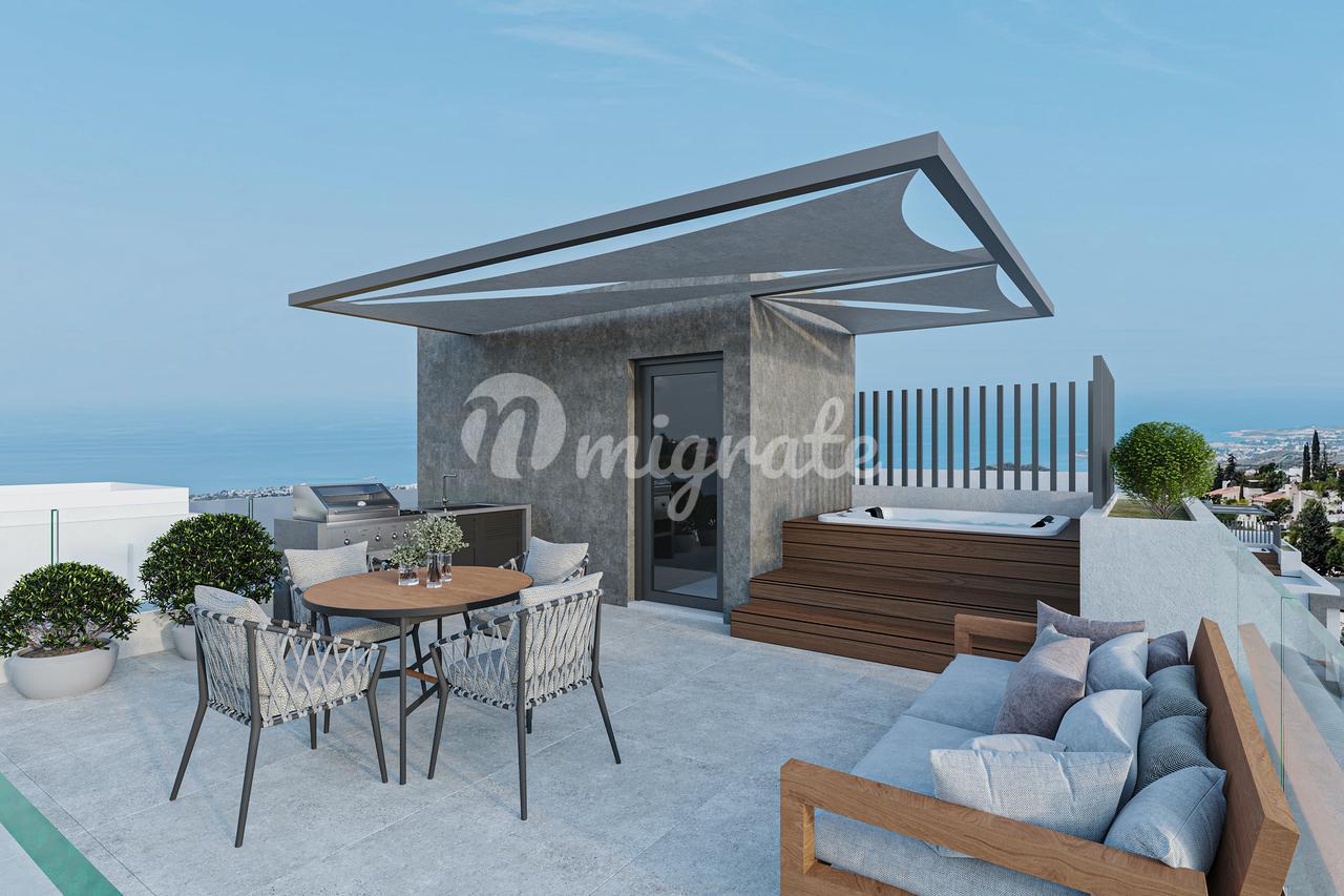 Виллы в 200 метрах от пляжа в Пафосе. Площадь вилл: 158 кв. м 3 спальни 3 ванные комнаты Бассейн Сад на крыше с джакузи Рядом: пляж, школы, магазины, места для досуга Готовность: 2026 г.