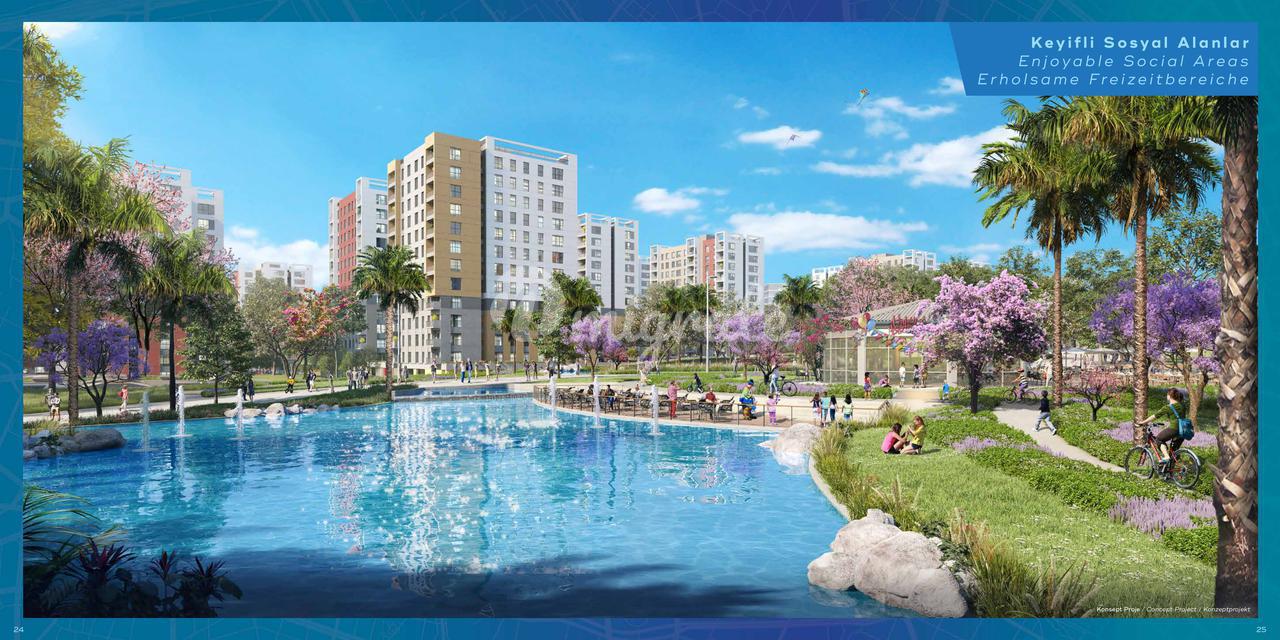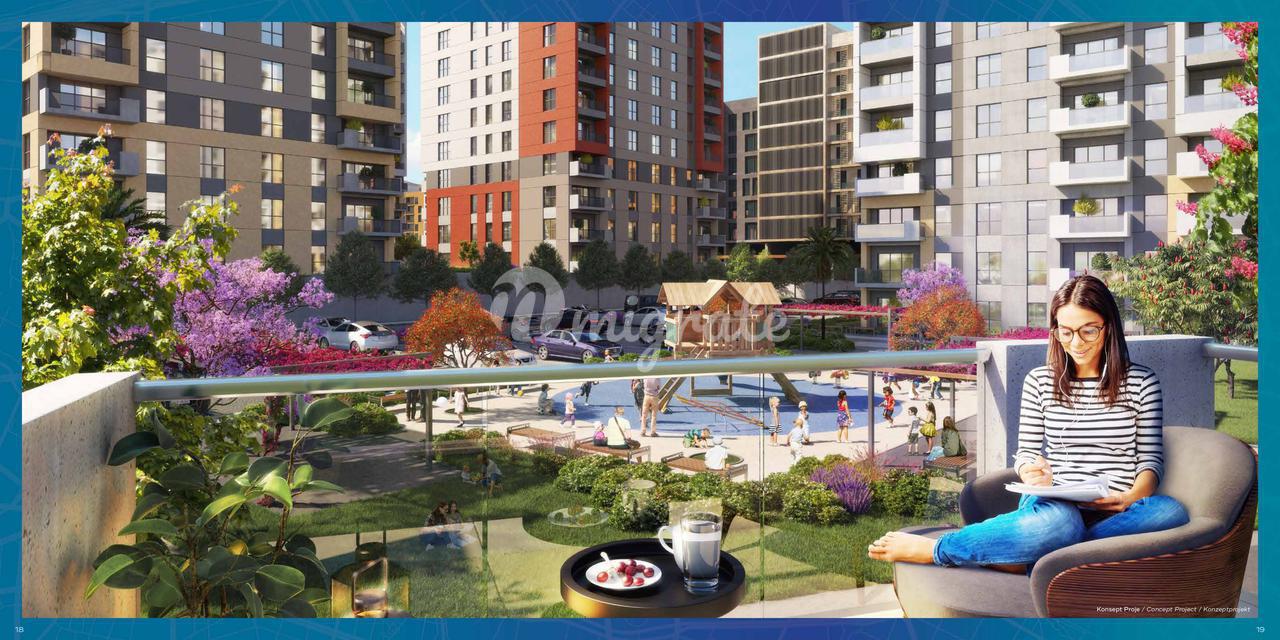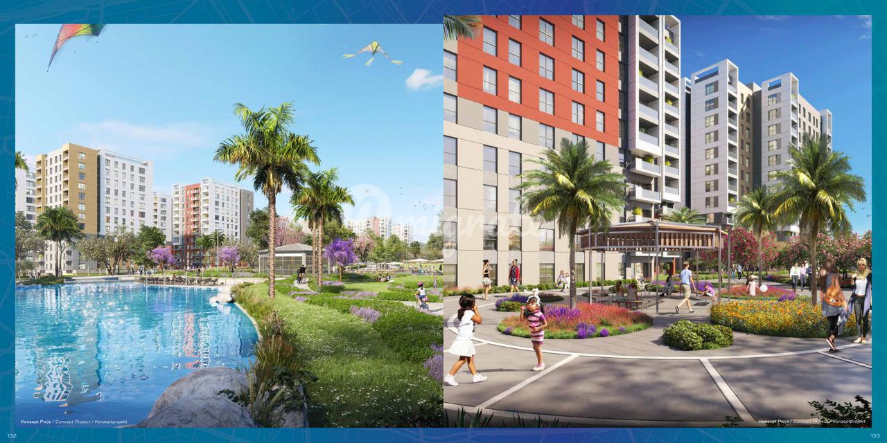 Новый многоквартирный комплекс находится в живописном зелёном районе Антальи. Этот проект, рассчитанный на 70 000 человек и включающий в себя жилые дома, магазины, офисы и множество социальных объектов, полностью оснащен всем необходимым. На территории: система безопасности 24/7, охранник, крытая и открытая парковки, социальные услуги, крытый, открытый и детский бассейны, сауна, парилки, турецкая баня, фитнес-центр, центр пилатеса, игровые площадки для детей. Рядом: остановки общественного транспорта, великолепный городской парк, музей, библиотека, образовательные учреждения, учреждения здравоохранения, социальные зоны, торговый центр.
