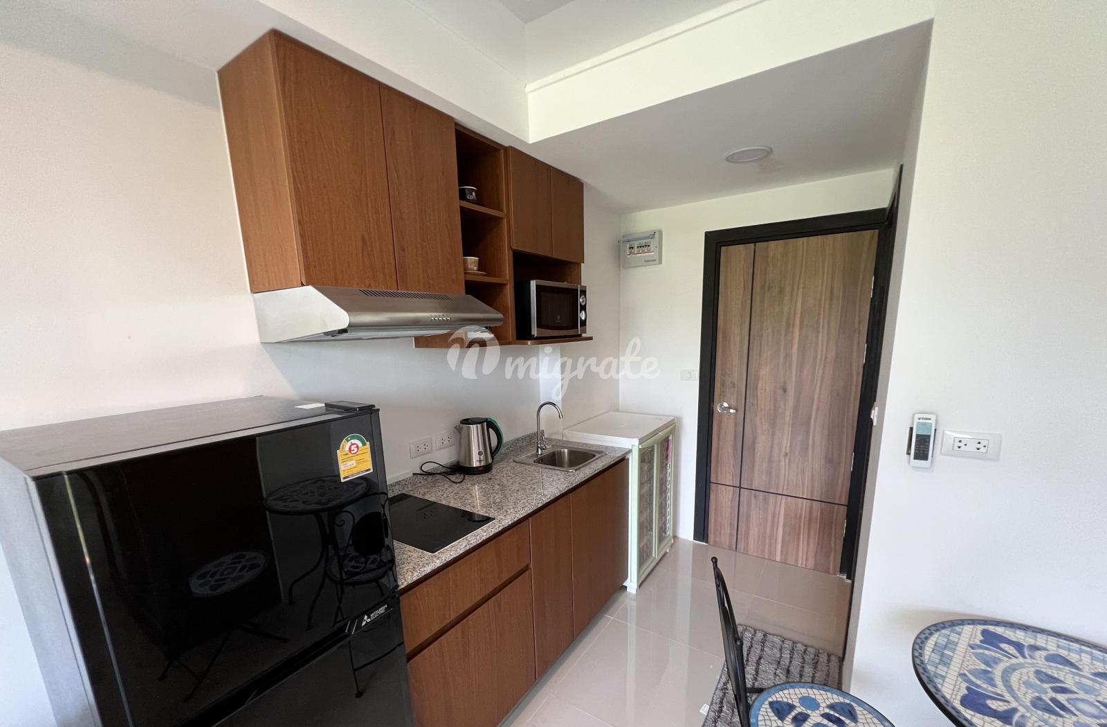 Квартира-студия в современном кондоминиуме, который предлагает весь спектр удобств для комфортного проживания. Комплекс состоит из четырех 8-ми этажных зданий на территории с просторным плавательным бассейном c выделенной детской зоной, тренажёрным залом, теннисным кортом, спа-центром, сауной и рестораном. Кондоминиум расположился в одном километре от пляжа Май Као, в трех минутах от аква-парка Splash Jungle Water Park и в окружении 5* отелей, в локации с высоким потенциалом развития. Местность тихая и спокойная, вдали от шума и городской суеты, тем не менее, в шаговой доступности находятся рестораны тайской, японской и европейской кухни, локальный магазины и популярный мини-март 7/11. Эта уютная квартира-студия расположена на втором этаже. С балкона открывается потрясающий вид на тропическую зелень. Квартира идеально подходит для пары или одного человека, которые ищут спокойный и уединенный отдых в окружении природы. Она оснащена всем необходимым для комфортного проживания. Квартира-студия представляет собой уютное помещение, где гости могут отдохнуть и расслабиться. Кухня полностью оборудована всей необходимой бытовой техникой и удобствами, включая холодильник, плиту и микроволновую печь. Гостиная зона оснащена телевизором, удобным мягким диваном и кроватью. Квартира-студия оформлена в иностранной квоте, таким образом будущему владельцу предоставляется возможность зарегистрировать квартиру в 100% частную собственность.