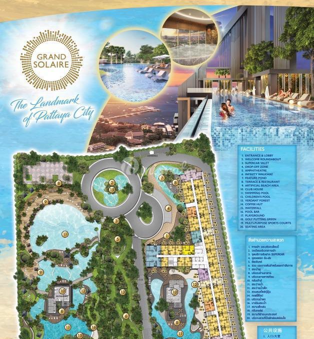 Это абсолютно новая квартира с 1 спальней расположена на 24 этаже нового уникального проекта в Паттайе. Grand Solaire Pattaya Condominium — это новый высотный суперпроект в центре Паттайи, в 700 м от пляжа Пратамнак. Этот уникальный кондоминиум расположен на Thepraya Soi 15, между Центральной Паттайей, Пратамнаком и Джомтьеном, что делает этот проект абсолютно удобным местом. Проект будет состоять из 67 этажей, что сделает его самым высоким зданием в Паттайе, а из большинства квартир открывается прекрасный панорамный вид на город и океан. Все 2 326 предлагаемых роскошных резиденций имеют самые современные элементы дизайна интерьера, в том числе декадентскую плитку под мрамор, роскошные кухни из черного мрамора и стекла, а также первоклассную сантехнику и фурнитуру. Наслаждайтесь непревзойденной роскошью в собственном доме с электронными сантехническими системами и специально разработанными компактными и энергосберегающими кондиционерами. В дополнение к ряду кондоминиумов с 1, 2 и 3 спальнями, на верхних этажах Grand Solaire Pattaya есть ряд премиальных представительских люксов с частными бассейнами и различные дополнительные улучшения только для самых взыскательных покупателей. На вершине роскоши находится наш гигантский двухуровневый пентхаус на крыше с 5 спальнями с ванными комнатами, собственным кинотеатром и игровой комнатой — самый большой кондоминиум в Паттайской недвижимости общей площадью 1260 квадратных метров. Образ жизни, предлагаемый в Grand Solaire Pattaya, не имеет себе равных. Проведите день в гигантском бассейне с волнами. Любителям спорта понравятся наши универсальные корты для футбола и баскетбола, тенниса и бадминтона, а также столы для бильярда и пинг-понга, чтобы взрослые и дети были в движении с утра до вечера. Любители фитнеса могут полюбоваться захватывающим видом на океан на 270 градусов в высокогорном йога-клубе и зоне релаксации дзен или насладиться полностью оборудованным тренажерным залом. От игры в гольф до паровой бани Onsen в массажном и оздоровительном спа-центре отеля; Grand Solaire Pattaya устанавливает новый стандарт абсолютной роскоши, не имеющий аналогов на рынке недвижимости Паттайи. Ожидаемое завершение декабрь 2025 г.