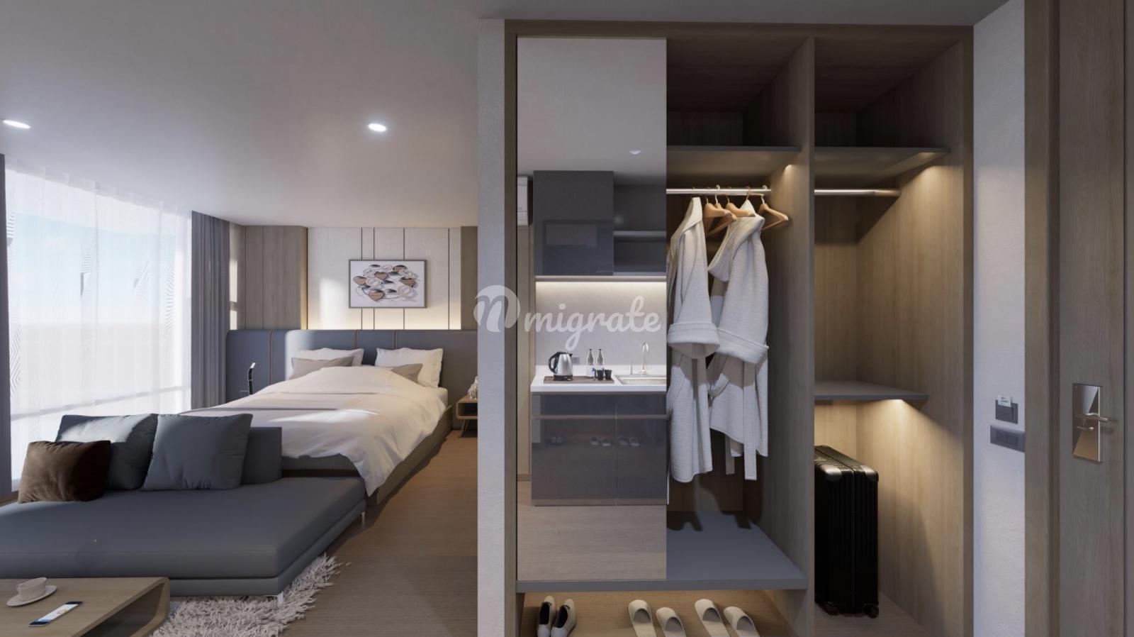 Квартира-студия на 2-м этаже кондоминиума Sea Heaven - фаза 2.2 Квартира полностью меблирована, мебельный пакет предлагается в подарок. Из окон квартиры открывается вид на бассейн. Строительство кондоминиума начнется в 2023, Q3 и будет завершено в 2025, Q4 На время строительства предлагается беспроцентная рассрочка платежа по следующему платежному плану: - 200.000 ТНВ (примерно 5.700 $) - депозит - 30% - при подписании контракта, в течение 30 дней - 25% - фаза заливки фундамента (2023, Q4) - 25% - фаза окончании строительства (2024, Q2) - 20% - при регистрации собственности (2025, Q4) Регистрация квартиры в лизхолд - 1.1% Стоимость фрихолд оплачивается дополнительно +10.000 ТНВ/ м2 Регистрация квартиры во фрихолд - 1.1% от стоимости квартиры УК проекта предлагает уникальную возможность не только воплотить в жизнь пляжный образ жизни из ваших мечтаний, но и инвестиционную программу, которая дает долгосрочный пассивный доход. Собственнику квартиры предлагается следующая инвестиционная программа получения пассивного дохода в течение 10 лет: - с первого года по пятый - программа гарантированной доходности 7% с правом личного использования 30 дней в году. - с шестого года по десятый - программа рентал-пул с разделением фактического дохода 60/40 в пользу собственника. Прибыль будет выплачиваться собственнику каждые 6 месяцев. От инвестиционной программы можно отказаться и использовать квартиру для личного проживания.