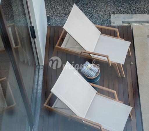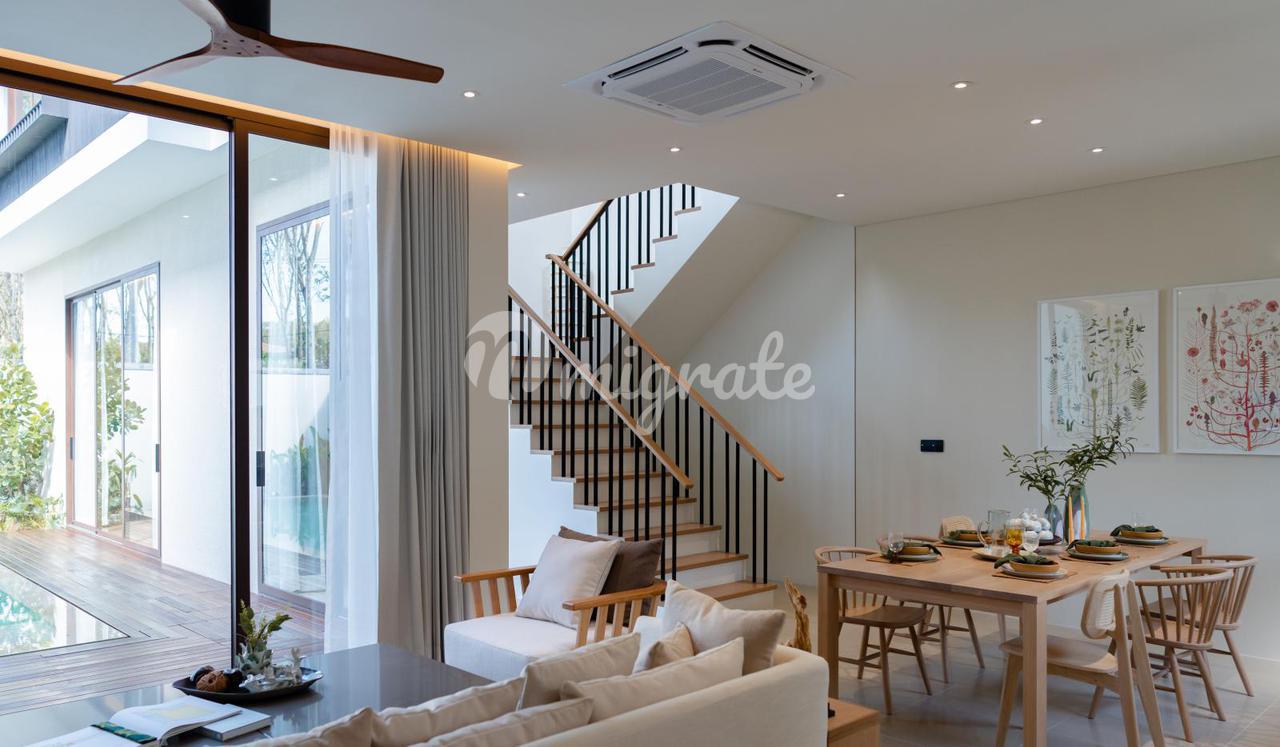 Виллы расположены в окружении рощи деревьев гевея, в районе Пасак, пляж Банг Тао Двухэтажная вилла, с террасой на крыше, где расположены отдельно зона для барбекю и зона отдыха. На первом этаже бассейн с выходом из главной спальни и из гостиной