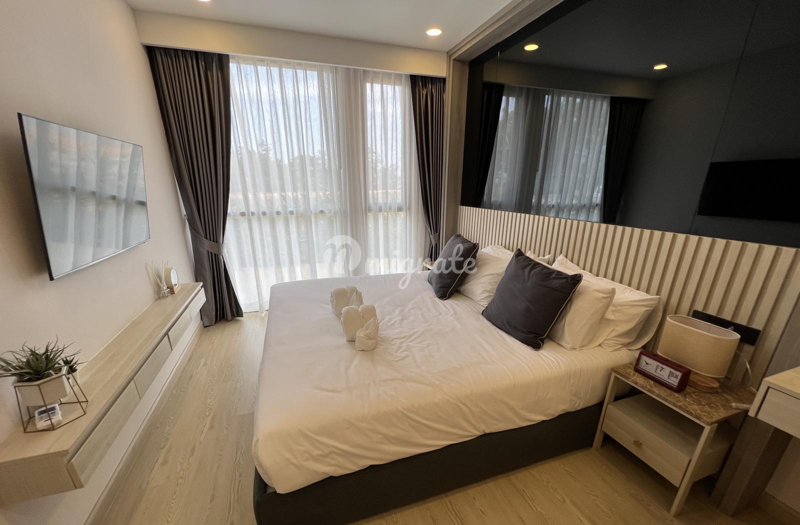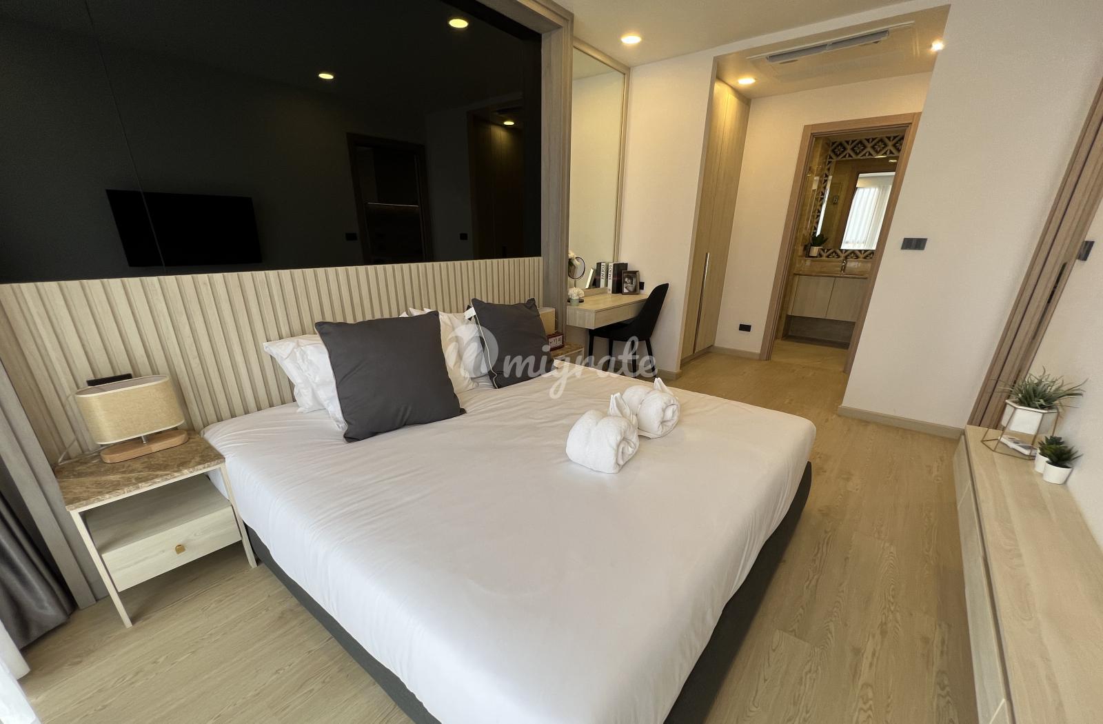 Двухкомнатная квартира расположена на 5 этаже 8-ми этажного здания с лифтом. Общая площадь квартиры - 42 квадратных метра. Просторная гостиная соединена с кухней-столовой, далее идет спальня и ванная комната. Гостиная просторная и светлая, с панорамными окнами, которые позволяют наслаждаться красивым видом на лучшее гольф-поле острова. В гостиной есть удобный диван, кресло и журнальный столик. Квартира оснащена необходимой техникой, как телевизоры в гостиной и спальной и холодильник, варочная поверхность и микроволновая печь, на кухне. Спальня с большой двуспальной кроватью, гардеробной и собственной ванной комнатой с душем. Квартира с балконом, на котором можно разместить столик и кресла и наслаждаться прекрасным видом на окружающую местность. В комплексе открытый бассейн L-формы, а инфраструктура располагается в отдельностоящем здании. Здесь будет тренажерный зал, СПА, сауна, детская площадка и коммерческие юниты для бизнеса. Также в комплексе есть место для парковки автомобилей и круглосуточная охрана, что обеспечивает высокий уровень безопасности для жильцов. Проект строится в лучшем районе острова Пхукет на пляже Банг Тао, в непосредственной близости от магазинов, ресторанов и различных развлекательных заведений. На местности зеленой и тихой, что создает идеальную атмосферу для жизни и в то же время, в непосредственной близости от популярных досуговых центров Boat Avenue и Porto de Phuket, пляжных клубов Catch, Dream Beach, Xana и люксовых СПА. Покупателю предлагается беспроцентная рассрочка до конца 2025 года и поэтапная оплата в соответствии со строительным прогрессом. Специальное предложение по данной квартире - мебельный пакет стоимостью $ 14.000 - в подарок. Предложение действительно до конца месяца.