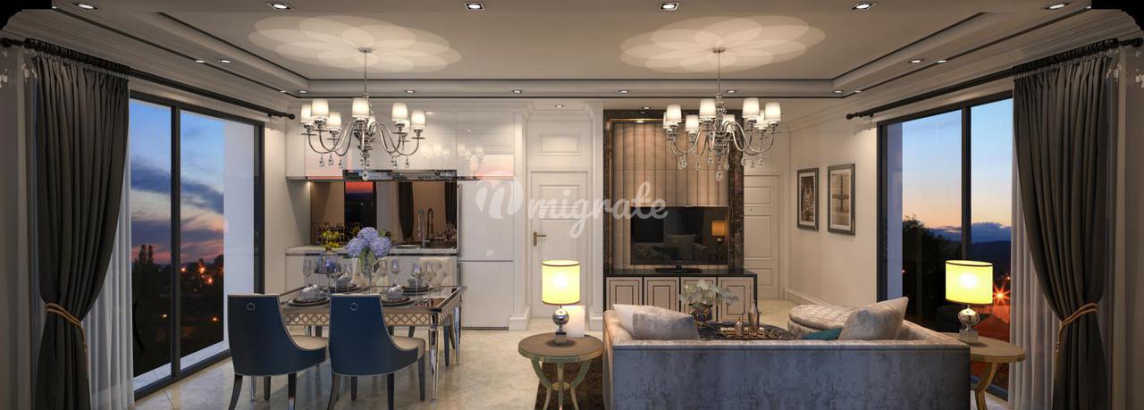 Просторная квартира с отдельной спальной комнатой располагается на втором этаже 7-ми этажного здания. Комфортная планировка квартиры позволяет использовать ее как для короткого отдыха в шаговой доступности к пляжу, так и для постоянного проживания. Квартира сдается в эксплуатацию с оборудованной ванной и со встроенной мебелью. Мебельный пакет для квартиры данной планировки стоит 350.000 ТНВ