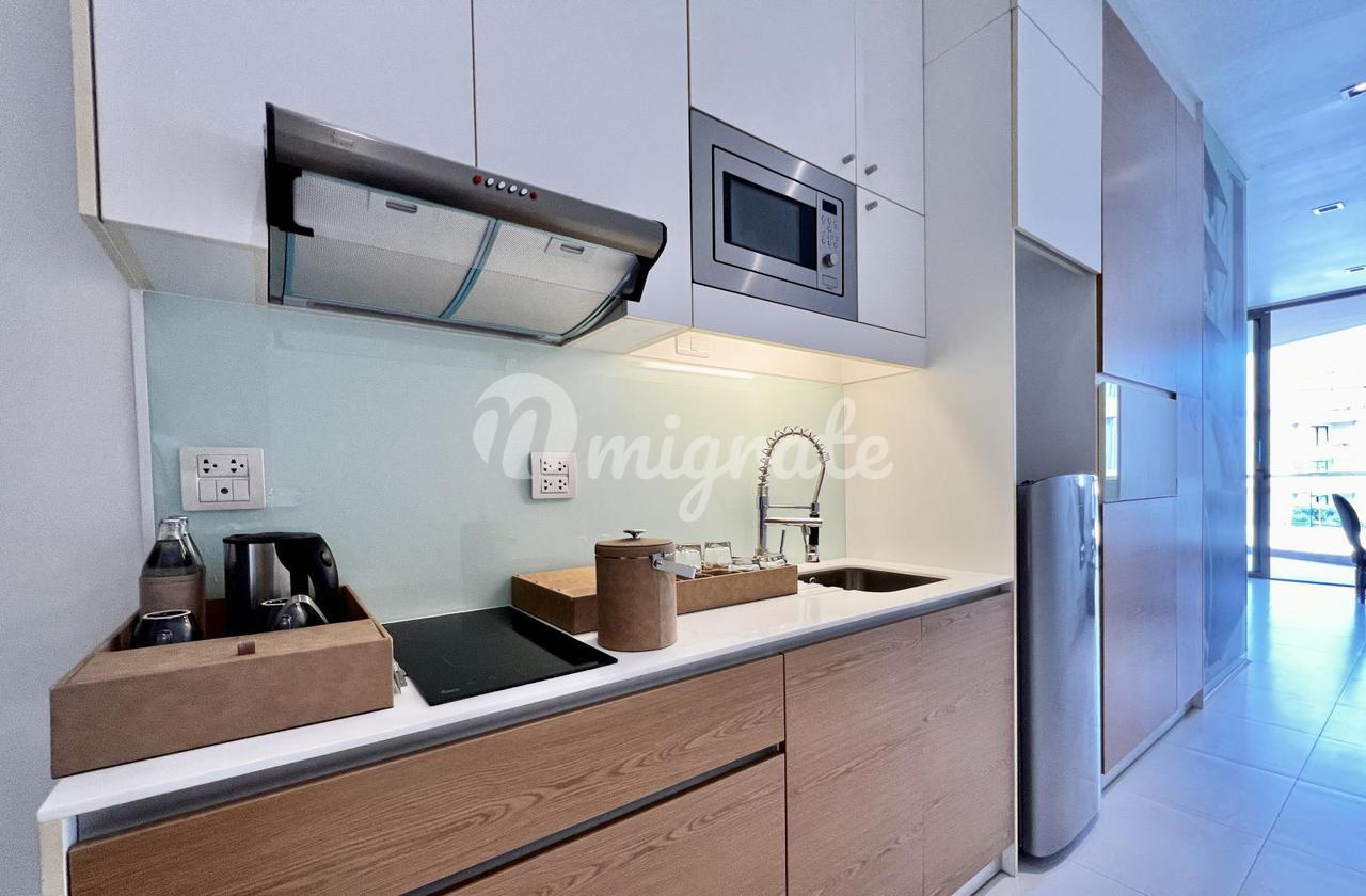 Modus Beachfront Condominium — это проект в 20 м от пляжа Вонгамат, построенный в 2013 году. Комплекс состоит из двух 5-этажных корпусов и имеет общий бассейн, сауна, тренажерный зал, сад/барбекю, магазин-ресторан/бар, wi-fi, лифт, парковка, круглосуточная охрана, видеонаблюдение Квартира находится на 3м этаже, полностью меблирована и декорирована, и продается все включено