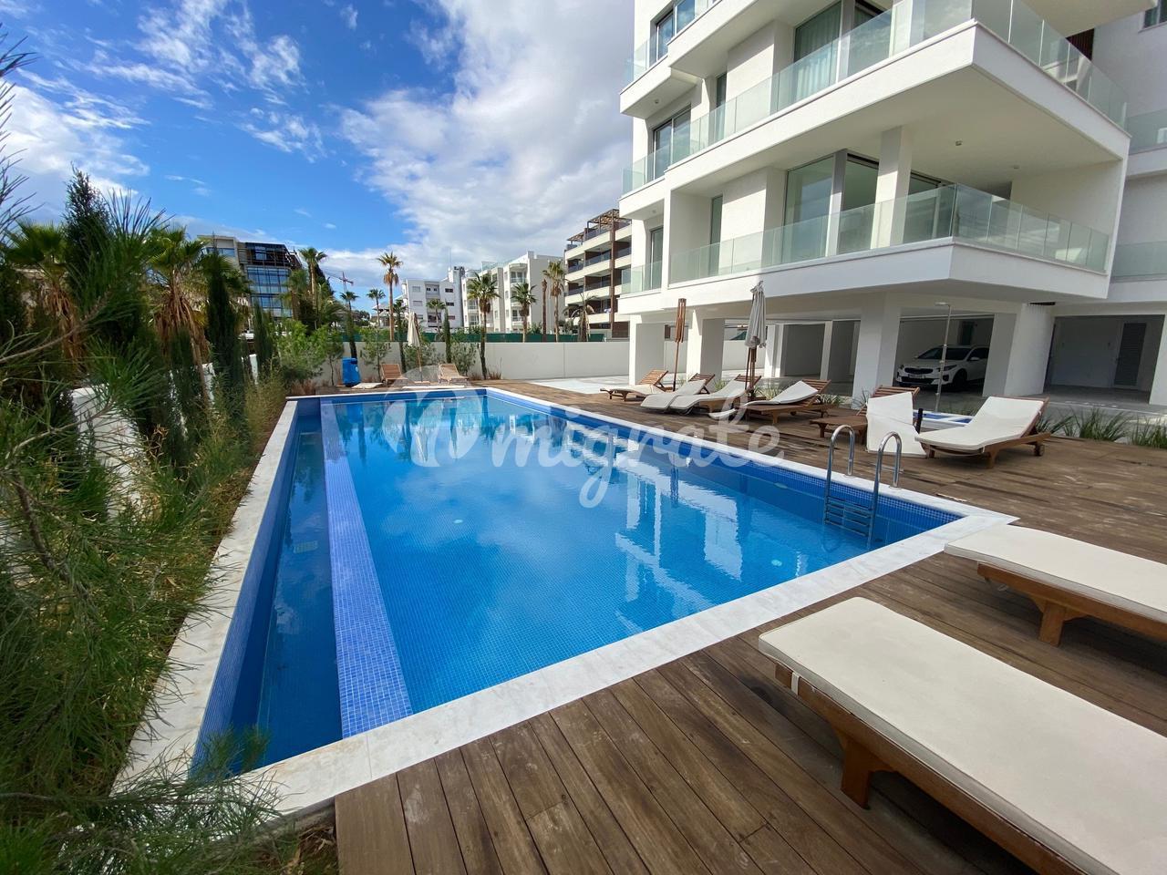 В этих просторных апартаментах есть гостиная и обеденная зоны открытой планировки, а также кухня. Гостиная с камином выходит на большую веранду с частным джакузи и зоной отдыха с прекрасным видом на город и горы. В распоряжении гостей 3 большие спальни. В главной спальне есть ванная комната. В квартире есть семейная ванная комната и гостевой туалет. Квартира отличается высококачественной отделкой, современным дизайном и отличными техническими характеристиками. Имеется крытая парковка. местоположение в 700 метрах от песчаного пляжа в 300 метрах от всех удобств в 50 км от международного аэропорта Ларнаки