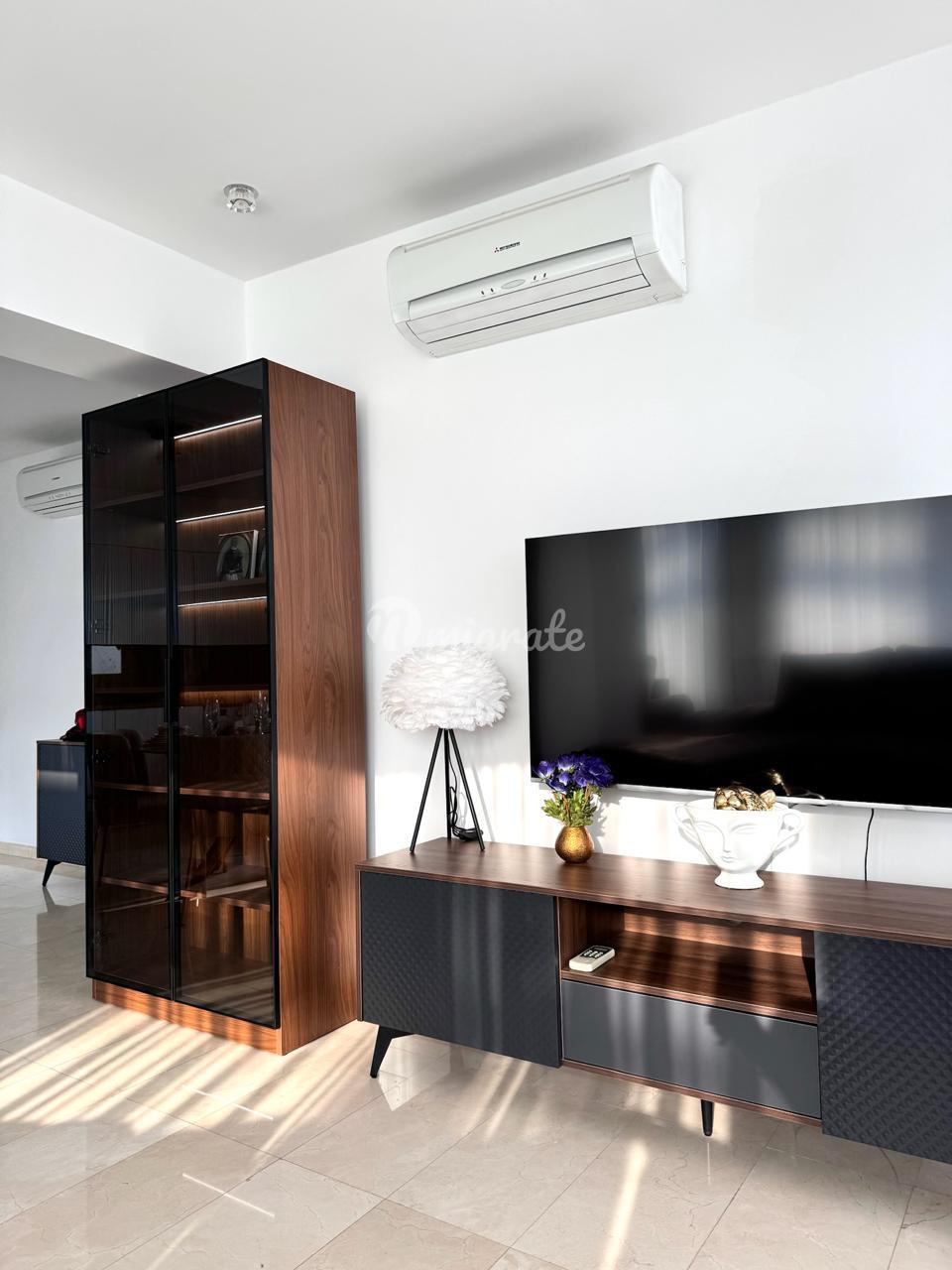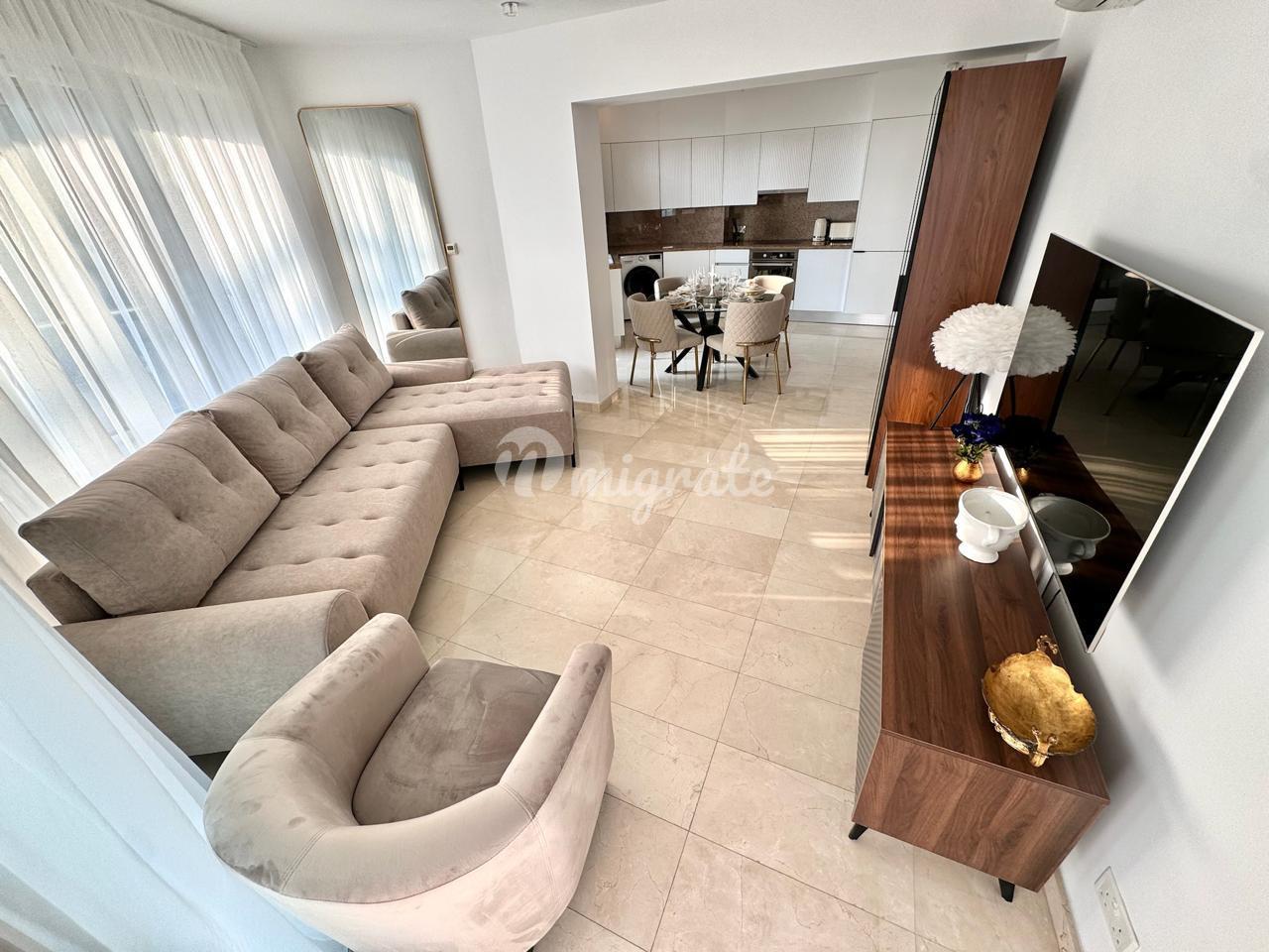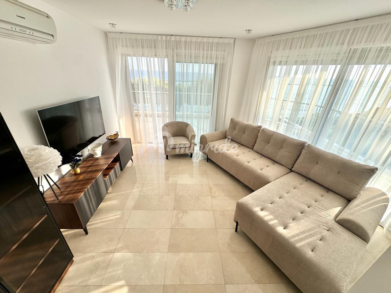 Квартира отличается просторной планировкой и современными удобствами. Гостиная выходит на большую террасу, что делает ее идеальной для отдыха и наслаждения потрясающим морским пейзажем. Удобная кухня, две спальни и две ванные комнаты обеспечивают максимальный комфорт для проживания.