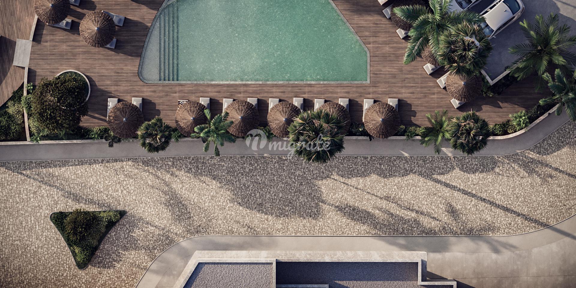 Этот проект состоит из шести блоков апартаментов, которые обеспечивают ощущение уединения, и включает в себя 64 квартиры с видом на море или общий бассейн. В него также входят пентхаусы с частным бассейном и апартаменты с частным садом.