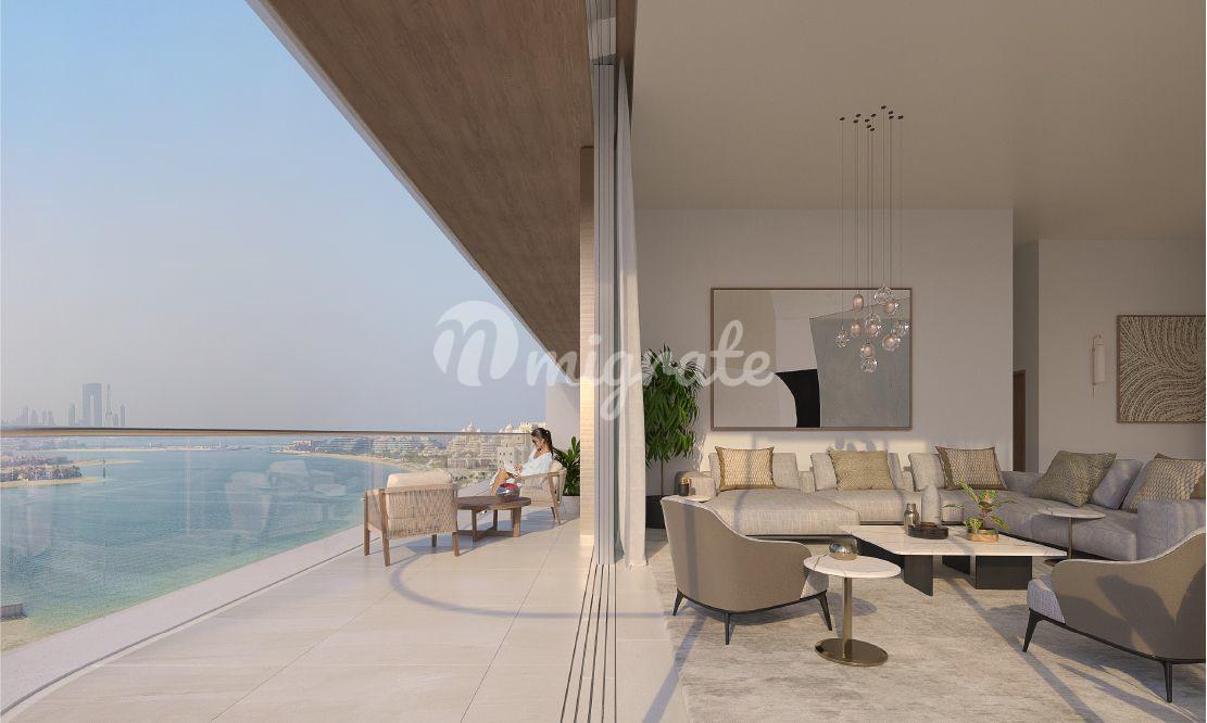 Квартира имеет просторный балкон с видом на Персидский залив и остров-пальму Palm Jumeirah.
