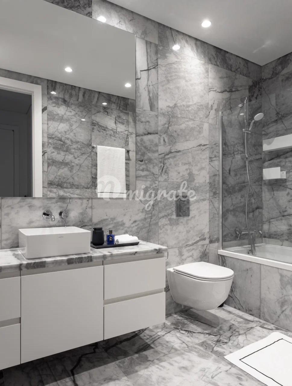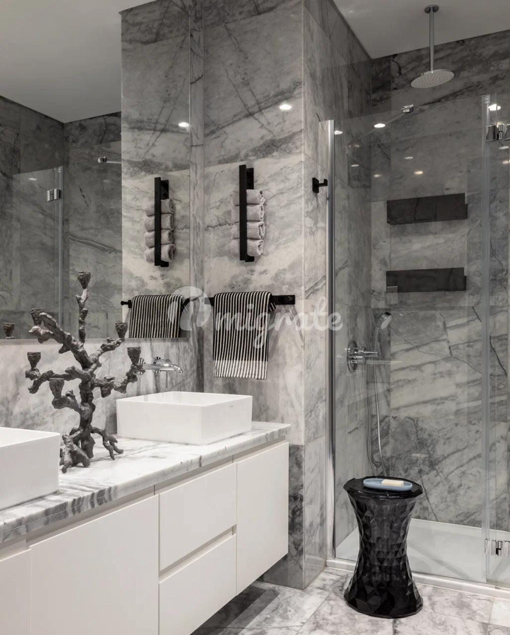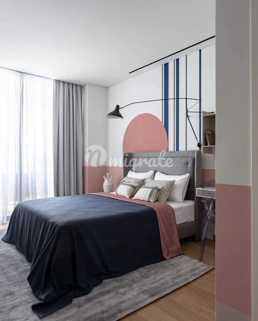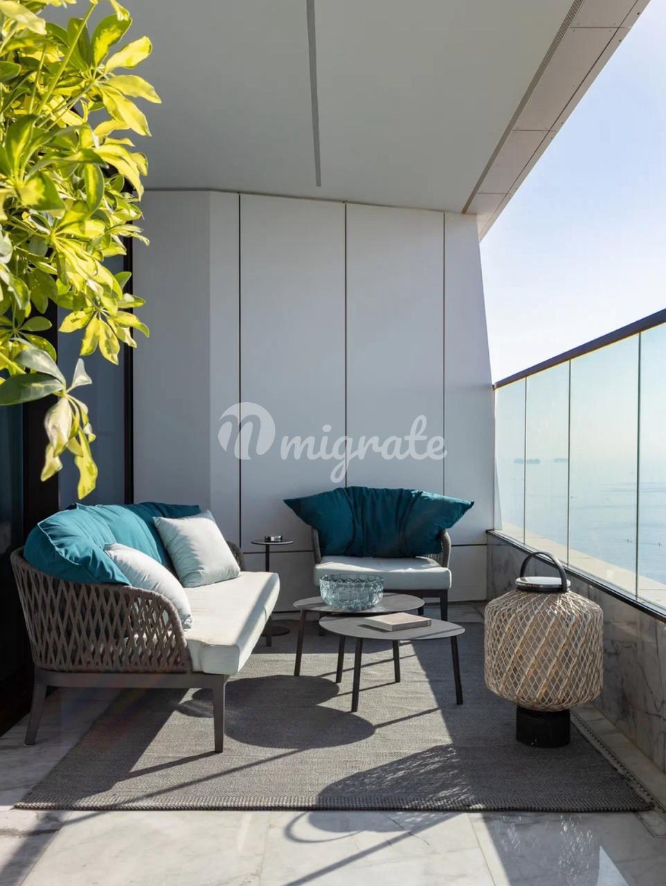 Квартира отличается уникальным дизайном в стиле Баухауз, который характеризуется плавными линиями, геометрическими формами и эстетикой минимализма. В квартире есть три роскошные спальни, каждая из которых предлагает ощущение комфорта и уединения. В главной спальне есть ванная комната и собственный балкон, где вы можете насладиться утренним кофе или расслабиться вечером, любуясь завораживающим видом на закат над горизонтом.
