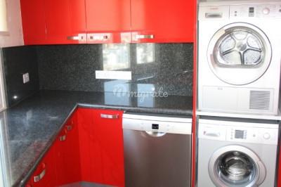Характеристика: площадь 300 кв.м., гостиная, большая кухня со встроенной техникой, прачечная, главная спальня с ванной комнатой и гардеробом, 2 спальни с душевыми кабинами, 3 отдельные спальни, отдельная ванная комната. Есть выход на большую меблированную террасу. Особенности: ламинированные полы, встроенная мебель, кондиционер, немецкая бытовая техника, солнечные батареи, 2 парковочных места.
