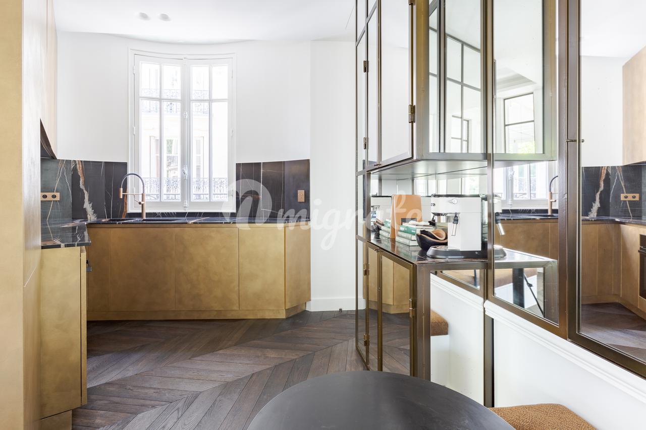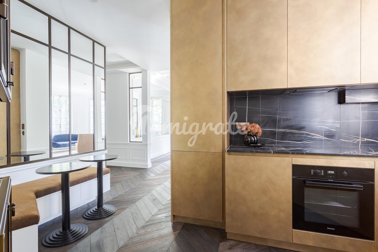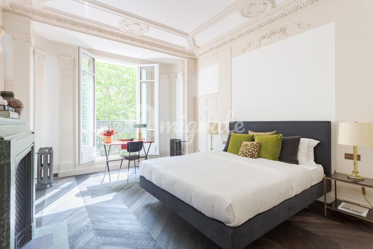 Изысканные апартаменты с 3 спальнями расположены на 2 этаже в 7 округе Парижа. Площадь – 147 м². Апартаменты отреставрированы, здесь сохранилась красивая лепнина и камины, установлен кондиционер. Апартаменты включают в себя просторную гостиную, столовую, кухню, главную спальню с гардеробной и собственной ванной комнатой, еще 2 спальни и 2 ванные комнаты. В здании есть лифт.