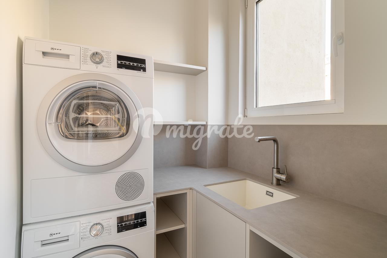 В квартире 4 спальные комнаты. Главная спальня с ванной комнатой и открытой гардеробной, а также спальня с двуспальной кроватью имеют выход на красивую галерею, выходящую на заднюю часть здания, которая включает в себя помещение для стиральной машины и сушилки.
