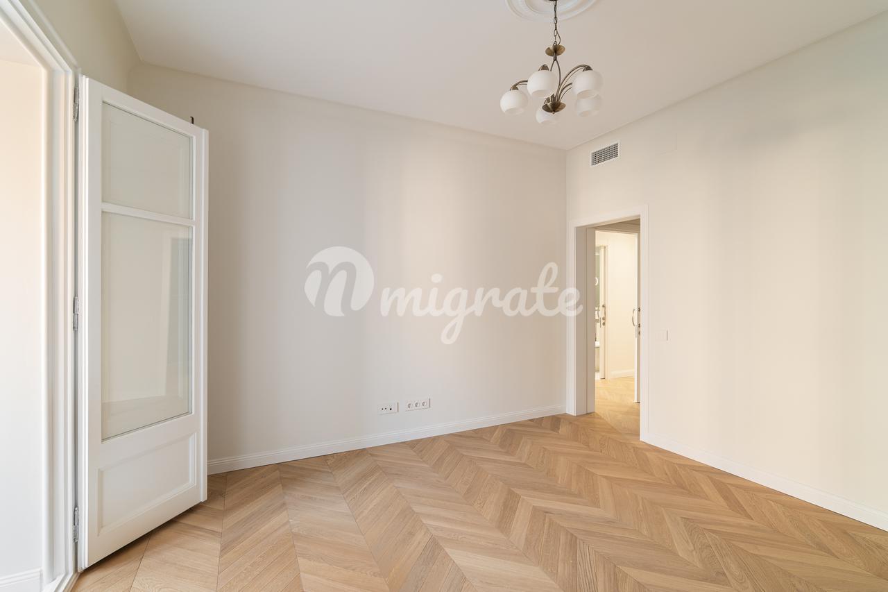 Квартира имеет площадь 170 м2 согласно кадастру, из которых 156 м2 жилья и 14 м2 общественных зон. Расположена на четвертом этаже красивого классического здания с лифтом.