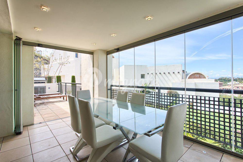 Роскошные просторные апартаменты, расположенные в закрытом охраняемом комплексе, в районе Лос Фламингос города Бенахавис. Апартаменты выполнены в современном стиле, имеют южную ориентацию и вид на гольф поле. Рядом с комплексом находится 5 * отель Villa Padierna. Апартаменты располагают гостиной и столовой, полностью оборудованной кухней, гостевым туалетом. Главная спальня с отдельной ванной комнатой и гостевая спальня с ванной комнатой. Прямой доступ к крытой террасе со стеклянными загородками, и на открытую часть террасы. Гараж для автомобиля и кладовое помещение входят в стоимость. Установлена система умного дома, кондиционер с подогревом, подогрев полов в ванных комнатах, газовый камин, мраморные полы. На территории комплекса ухоженный сад и большой бассейн. Мебель по договоренности, Барбекю, Ванная комната, Кладовка, Лифт, Мраморные полы, Подсобное помещение, Крытая терасса, Встроенные шкафы, Приватная терраса, Кондиционер тепло /холод, Камин, Полы с подогревом в ванной, Умный дом, Рольставни, Сигнализация, Закрытая урбанизация, Охрана 24 часа, Бассейн на территории, Вид на гольф поле, Кухня меблирована, Подземный паркинг.