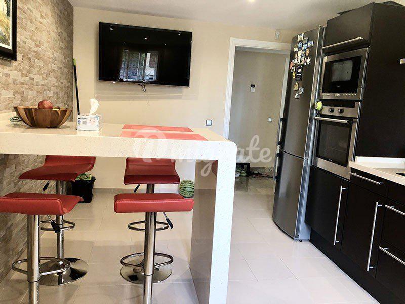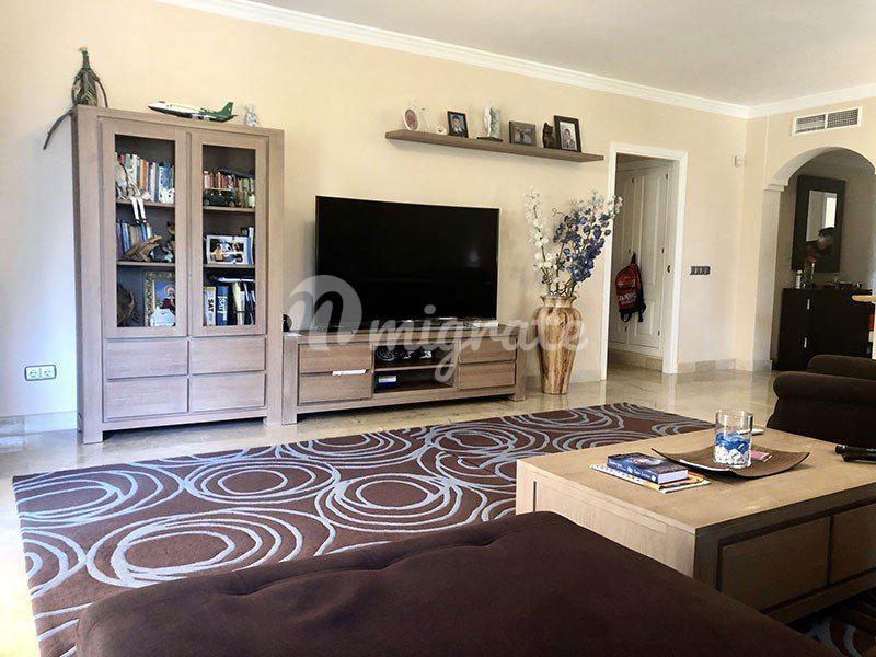 Уютные трех-спальные апартаменты, расположенные на территории закрытого комплекса Marques de Atalaya, на Новой Золотой Миле. Апартаменты располагают 3 спальнями и 2 ванными комнатами, 1 гостевым туалетом. Полностью оборудованная кухня с островом для завтрака, просторная гостиная с выходом на большую террасу с видом на сад. Просторные и светлые комнаты, квартира полностью меблирована. Апартаменты находятся на нижнем этаже, но на возвышении благодаря ландшафту. Цена включает в себя подземный гараж и кладовое помещение. Ухоженный охраняемый комплекс, тропический сад с двумя открытыми бассейнами, теннисный корт, СПА с подогреваемым бассейном, тренажерный зал. Комплекс расположен в 5 минутах ходьбы от крупного супермаркета, рядом с Colegio Atalaya, окружен несколькими полями для гольфа. Всего в 5 минутах езды от пляжа и гастрономического города Бенахавис, в 10 минутах езды от Марбельи.