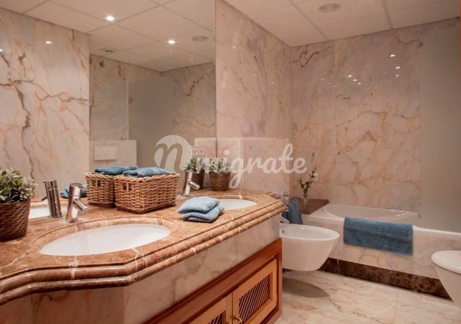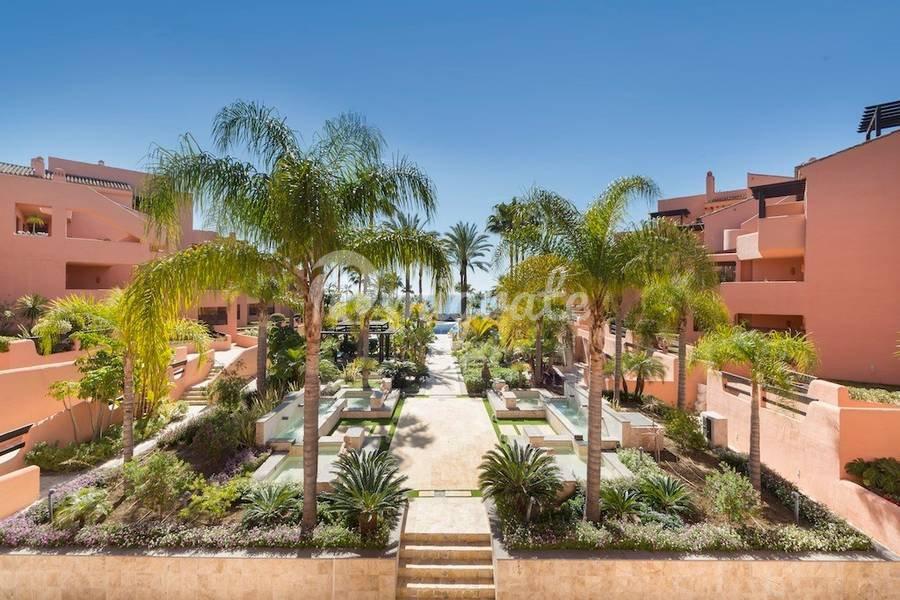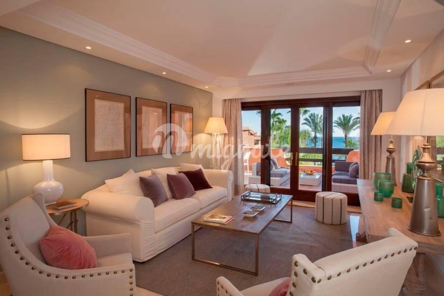 Комплекс апартаментов, выполненный в средиземноморском стиле, расположился на первой линии моря Новой Золотой Мили, между Марбельей и Эстепоной. Апартаменты располагают светлой гостиной с обеденной зоной и прямым доступом к просторной террасе; полностью оборудованной современной кухней с техникой Bosch; отдельной кладовой комнатой; 2 спальни и 2 качественно оборудованные ванные комнаты. С террасы открываются виды на Средиземное море и побережье, живописные сады и тропические бассейны. Комплекс имеет ряд преимуществ: элегантные интерьеры, система домашней автоматизации, мраморные полы с подогревом внутри квартиры и традиционная испанская терракотовая плитка на террасе, отопление, кондиционер, джакузи, видеодомофон, современное освещение, удобные встроенные шкафы, места в подземной парковке и прочее. Комплекс имеет круглосуточную охрану, услугами консьержа, прямой выход на пляж, великолепные ландшафтные сады с бассейнами, СПА и фитнес-центр с крытым бассейном, тренажерным залом. Расположен всего в нескольких минутах езды от центра Эстепоны (Estepona) и менее чем в 10 минутах от Сан Педро (San Pedro), в пешей доступности пляжный клуб «Puro Beach» и созданный в тропическом стиле коммерческий центр «Laguna Village» с модными бутиками, кафе, ресторанами и барами. Вы также сможете пользоваться услугами 5-звездочного отеля «Kempinski Hotel Bahía» и оздоровительного СПА-отеля «Healthouse Las Dunas Beach Hotel and Spa». Между Эстепоной и Марбельей имеется множество полей для гольфа.