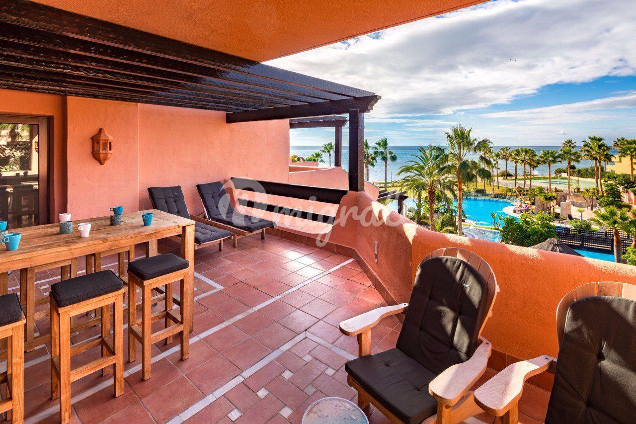 Пентхаус, расположенный на Новой Золотой Миле, Эстепона. Апартаменты располагают 3-мя спальнями и 2-мя ванными комнатами, просторной гостиной, оборудованной кухней. Ориентация на юг и юго-запад, с потрясающим видом на море и прямым доступом к пляжу. Закрытый охраняемый комплекс, на территории несколько бассейнов, спа, тренажерный зал. В стоимость входит место в подземной парковке на 2 автомобиля. В непосредственной близости от центра города Эстепоны и всей инфраструктуры, в 10 минутах езды от знаменитого Пуэрто Банус и Марбельи.