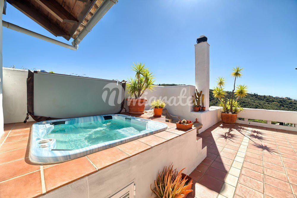 Красивый, просторный и светлый угловой пентхаус, расположенный в тихом и приватном месте в районе Бенахавис. Первый этаж: большая гостиная с камином и полностью оборудованной кухней. Прямой доступ к нескольким террасам с прекрасным видом. Две гостевые спальни с ванными комнатами. Второй этаж: Главная спальня с ванной комнатой, большая терраса с зоной барбекю и джакузи. Комплекс расположен рядом с гольф клубом La Quinta Golf Club и рядом со всеми удобствами.