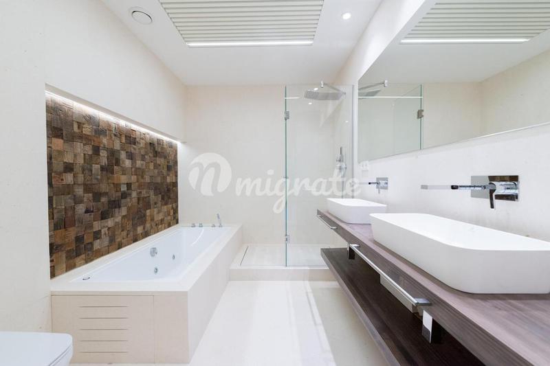 На втором этаже находится небольшой зал для отдыха и три спальных комнаты - две больших и одна элегантная комната с собственной гардеробной, отделанной деревом. Дуплекс продаётся с двумя парковочными местами.