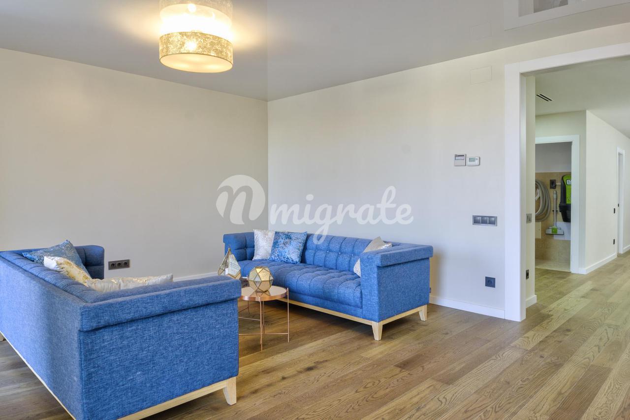 Апартаменты включают салон-столовую с камином и выходом на застекленный балкон, полностью оборудованную кухню, 4 спальни, 2 ванные комнаты и джакузи.
