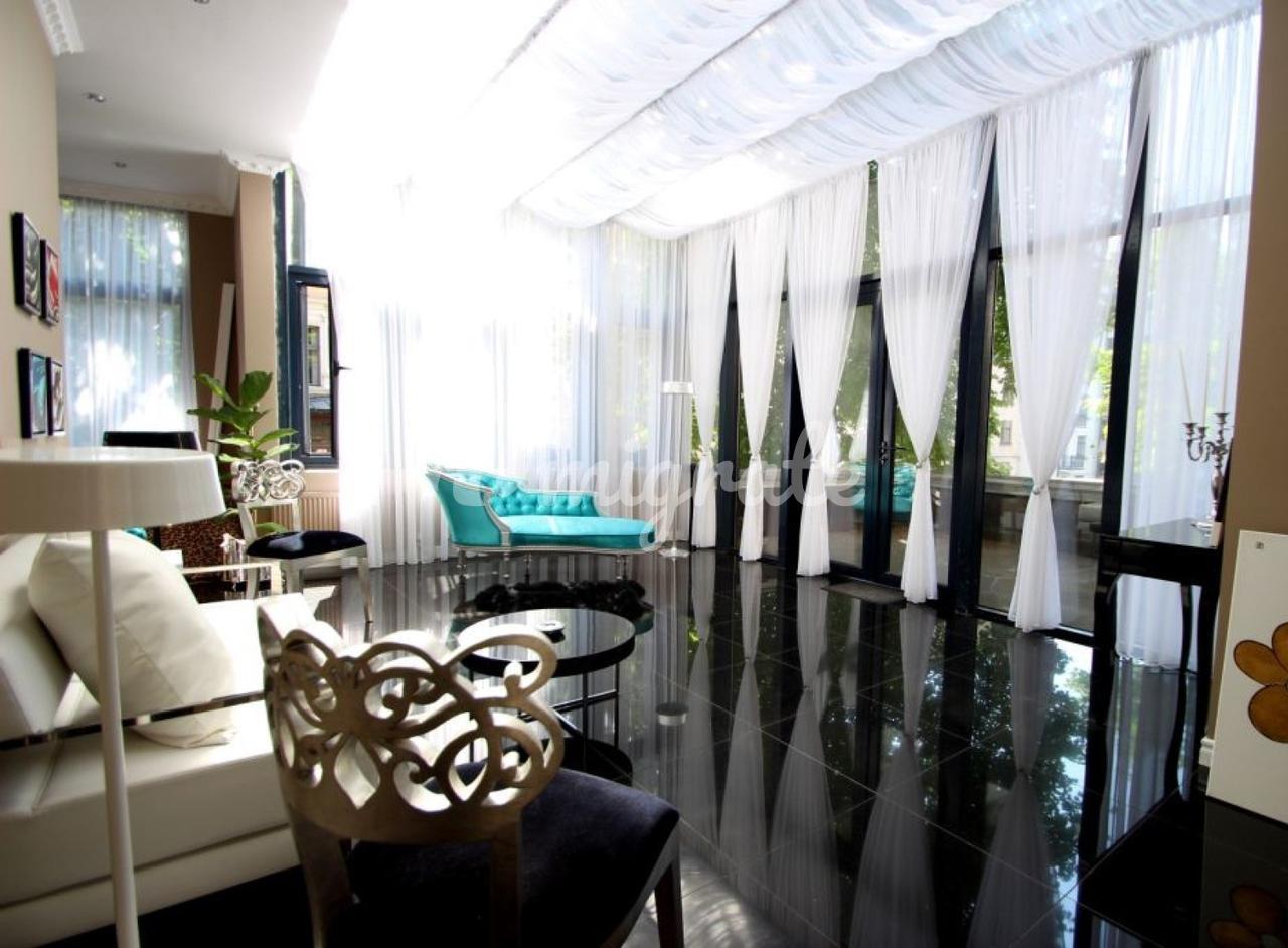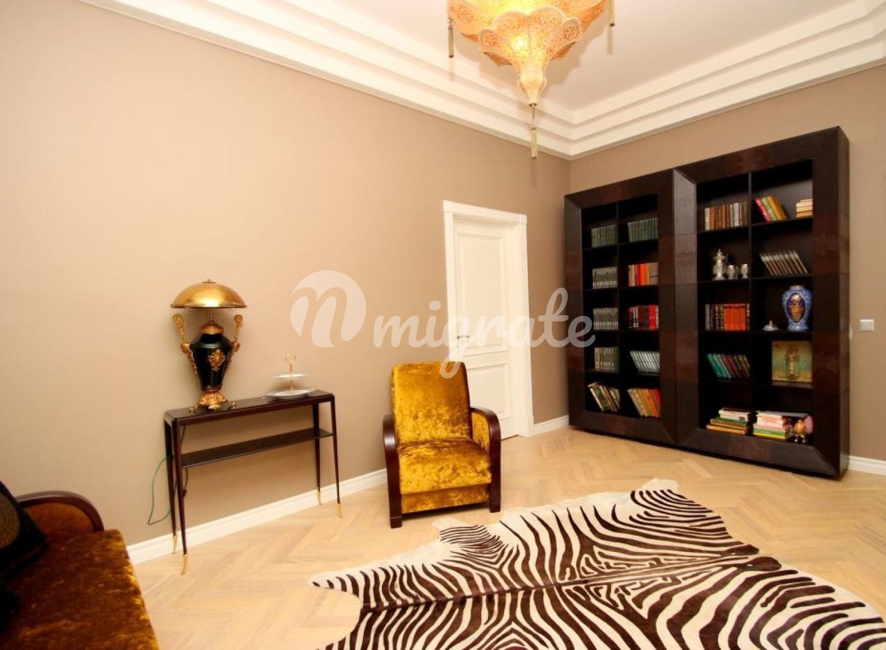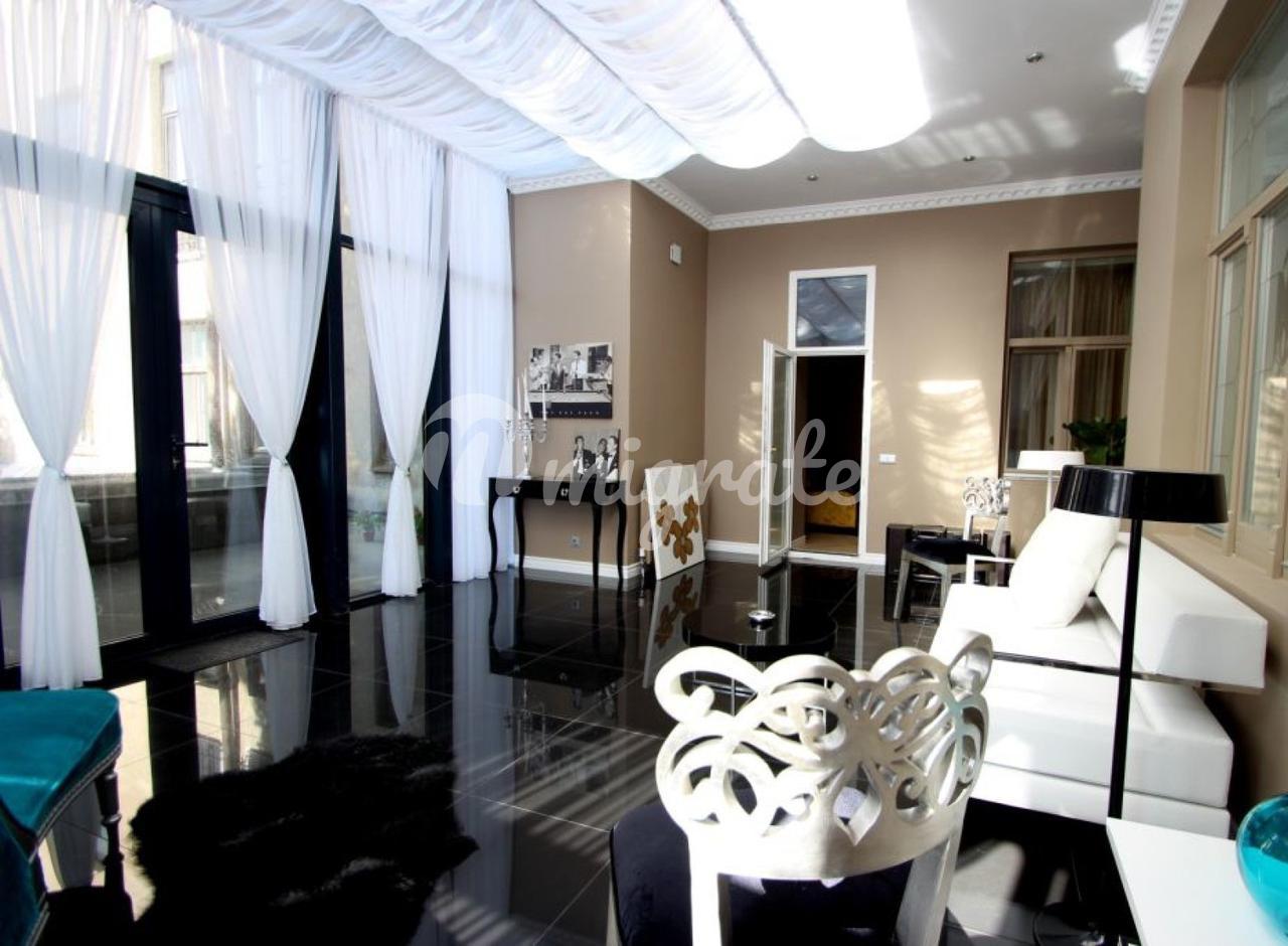 Пятикомнатная квартира площадью 202 м² расположена на втором этаже в самом центре Риги. Рядом церковь Святой Гертруды. В квартире обустроена терраса и зимний сад. Полностью меблирована, в квартире – паркетный пол, в санузлах теплые полы. Отличное месторасположение – всё необходимое в шаговой доступности.