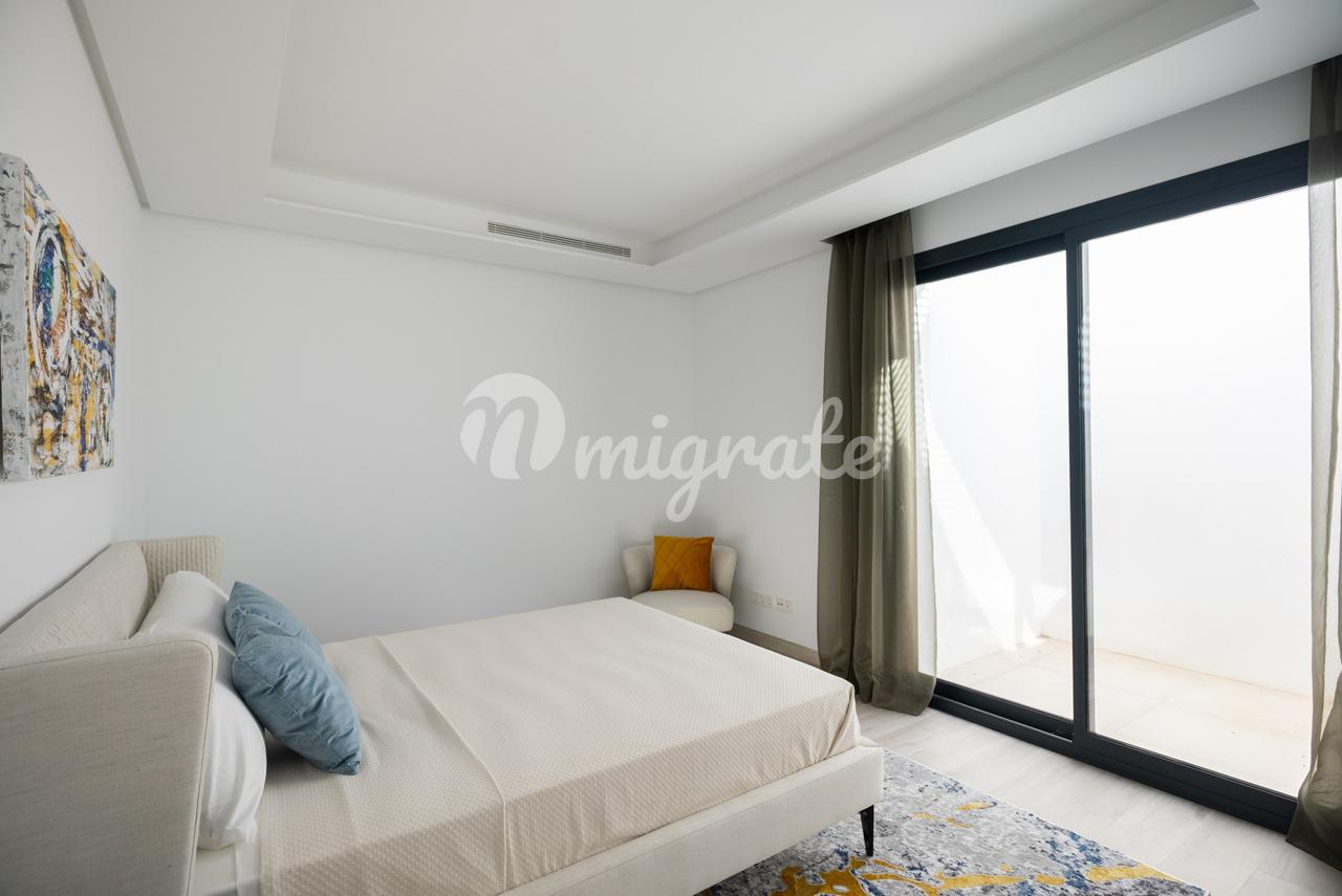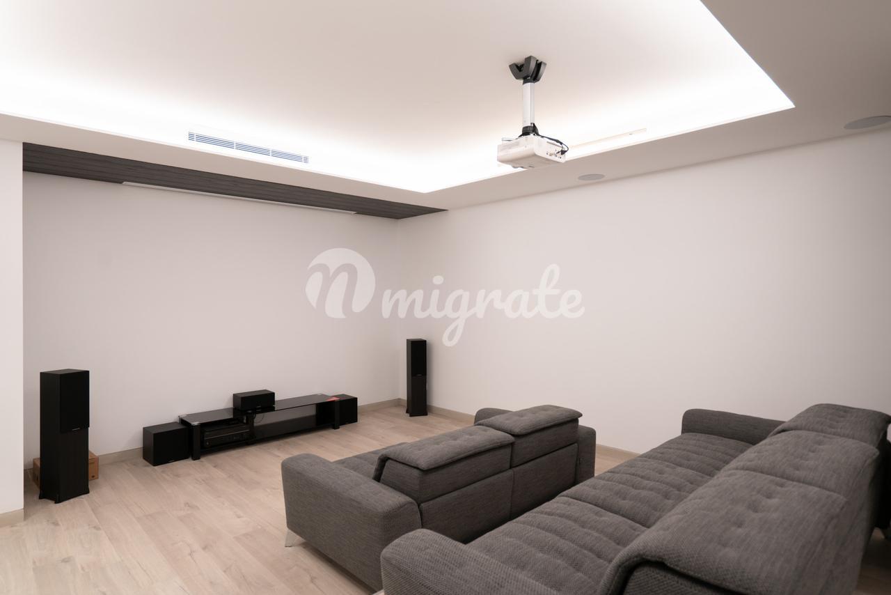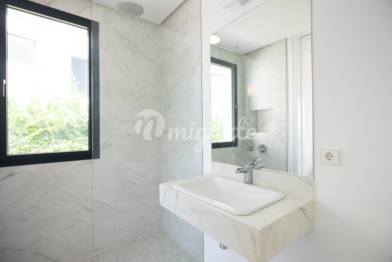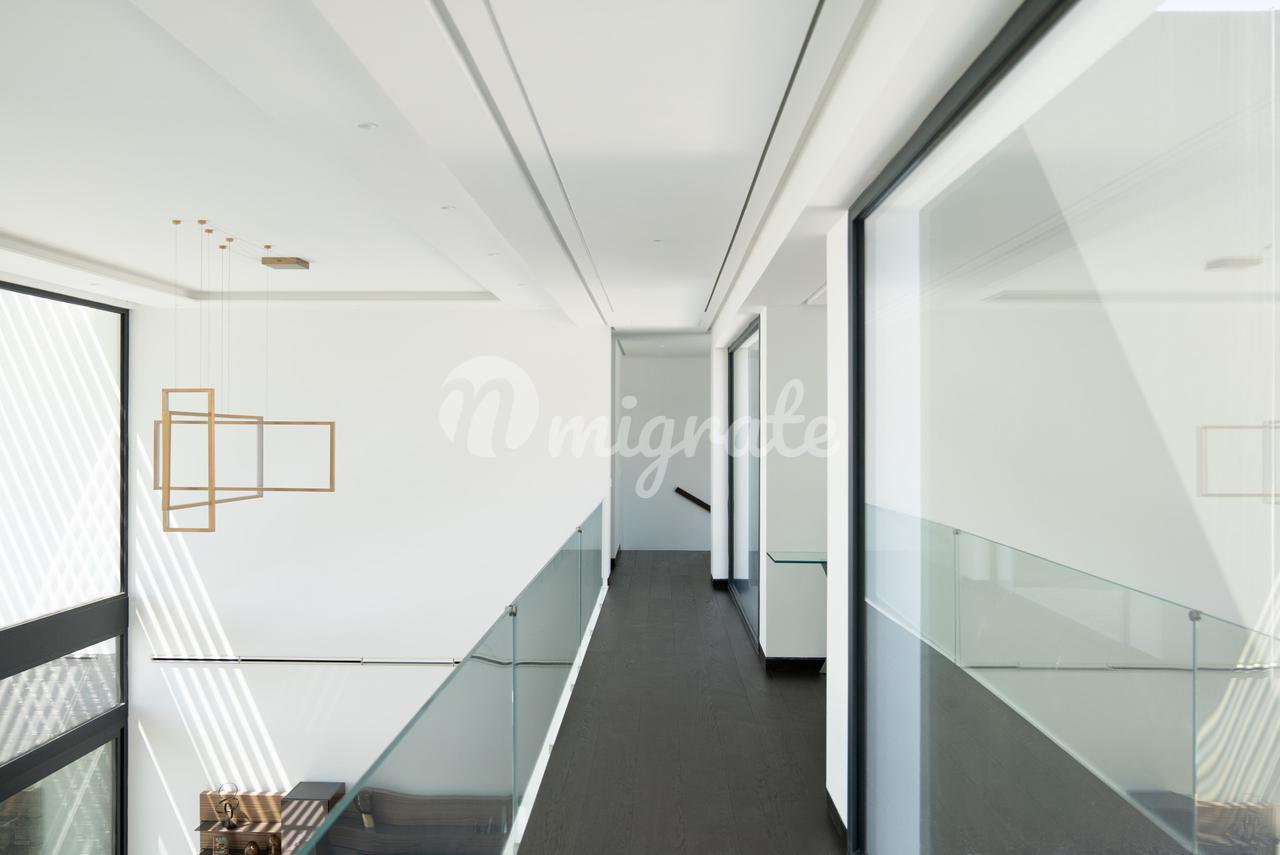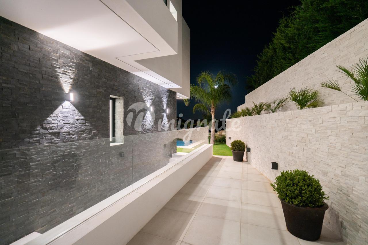 Вилла площадью 630 м2 построена на участке площадью 1285 м2. Он распределен по трем уровням. На первом этаже есть потолки двойной высоты и большие окна, которые дают свет и яркость в течение дня, смешивая внутреннее и наружное пространство. Полукрытая веранда, откуда вы можете наслаждаться видом на поле для гольфа и море из пейзажного бассейна. Открытая планировка идеально сочетает в себе гостиную, столовую и полностью оборудованную кухню. Спальная зона состоит из трех спален с ванными комнатами. В главной спальне есть большая гардеробная. Цокольный этаж предназначен для развлечений и включает в себя многофункциональную комнату с бильярдным столом, винный погреб, бар и кинозал. Существует также дополнительная спальня с ванной комнатой, которая может быть использована в качестве помещения для гостей или персонала. Машинное отделение и прачечная завершают планировку этого уровня.