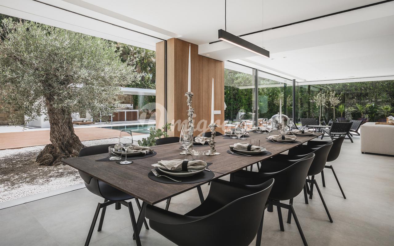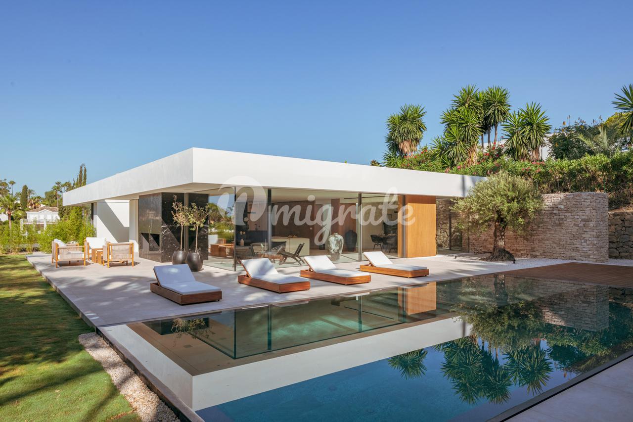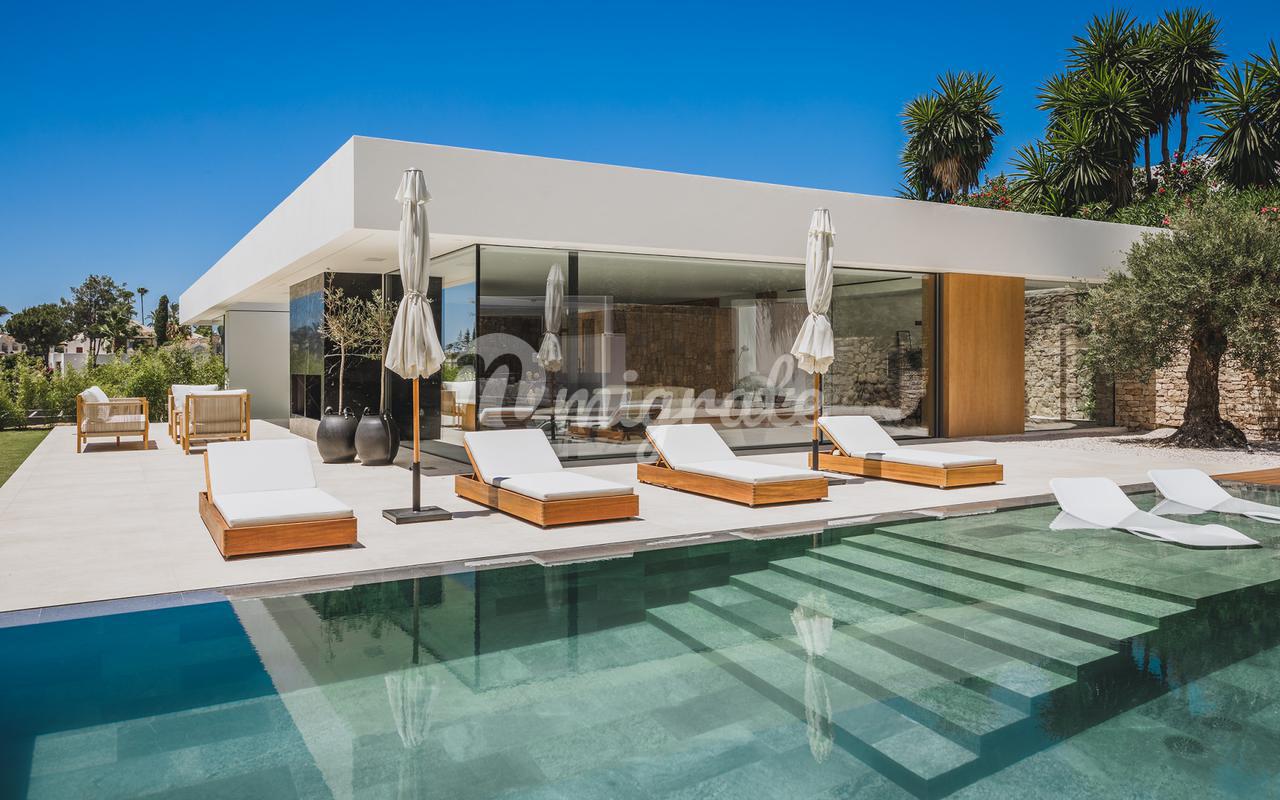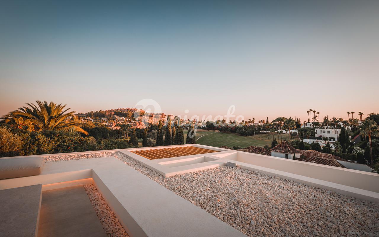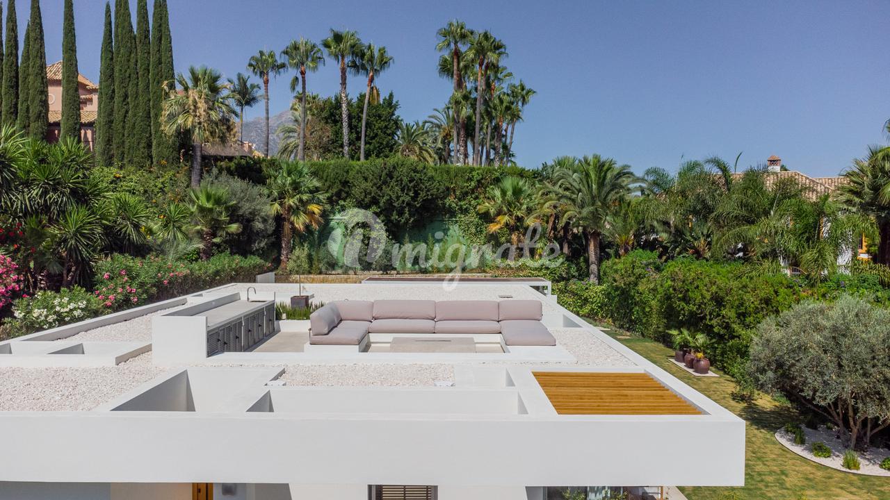 Эта вилла на участке площадью 1202 м2 была спроектирована престижной архитектурной студией N-Mobe Arquitectura с особым вниманием к отделке и натуральным материалам, таким как камень и дерево. Построенный на одном уровне, он практичен и удобен. С просторными верандами и жилыми зонами на свежем воздухе он идеально подходит для того, чтобы наслаждаться хорошей погодой Марбельи круглый год.