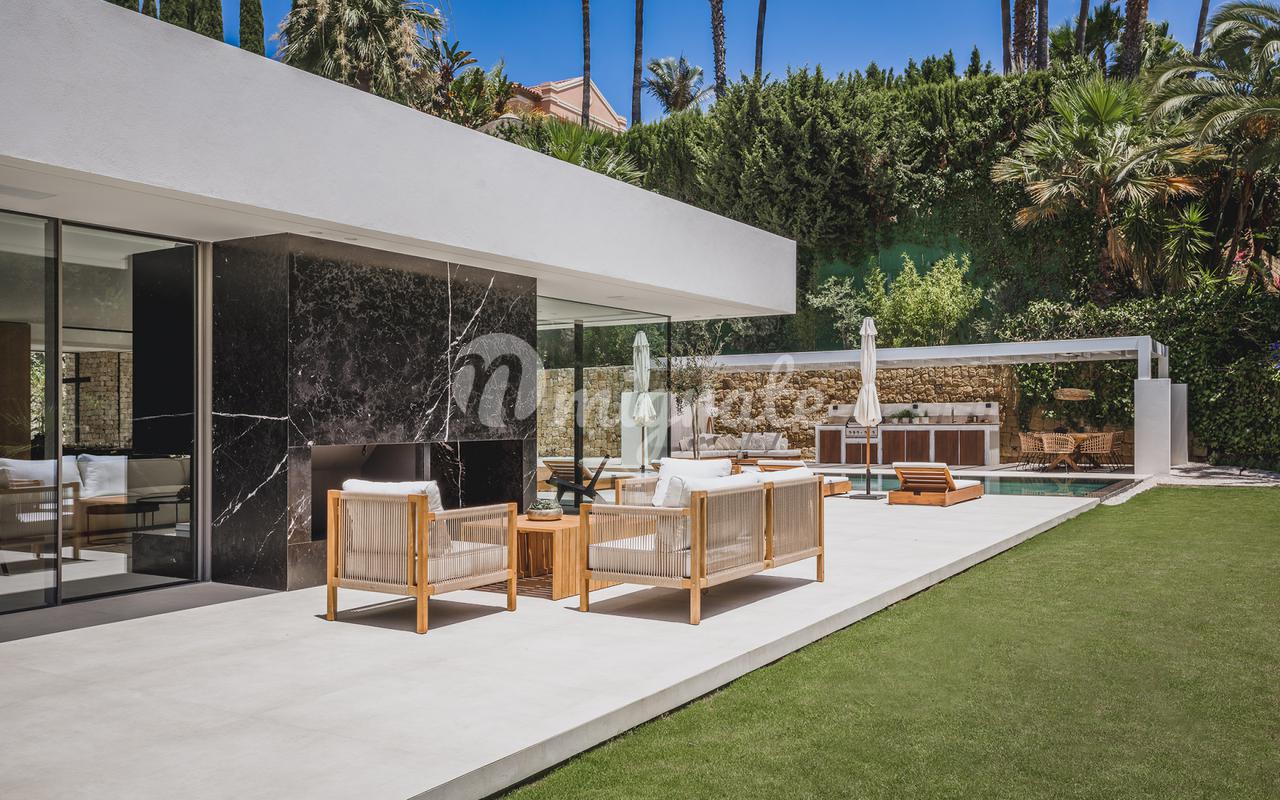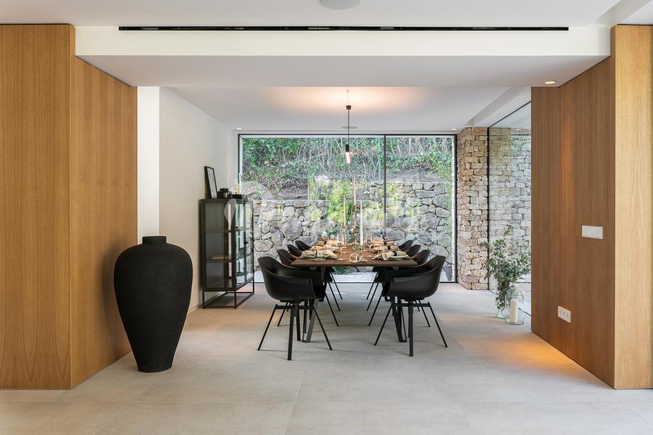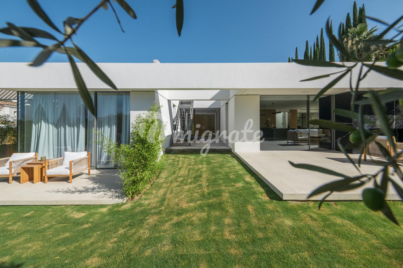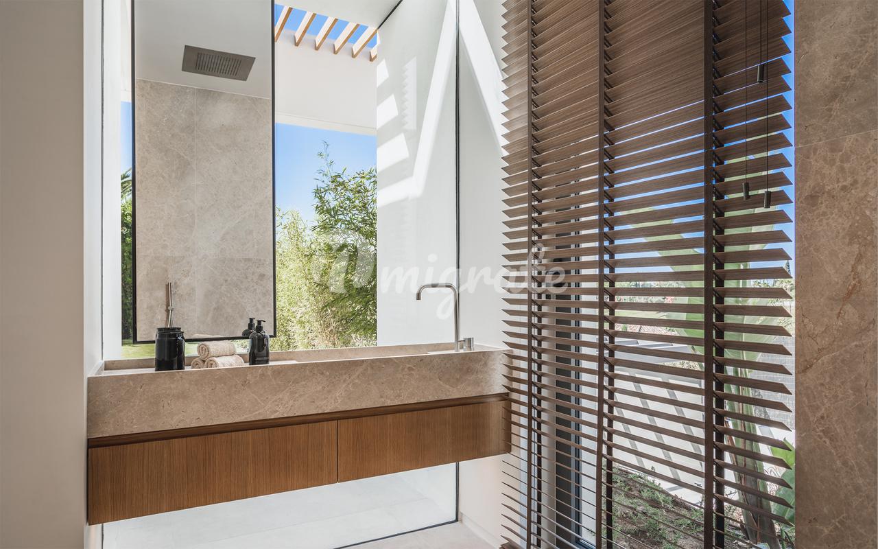 Эта вилла на участке площадью 1202 м2 была спроектирована престижной архитектурной студией N-Mobe Arquitectura с особым вниманием к отделке и натуральным материалам, таким как камень и дерево. Построенный на одном уровне, он практичен и удобен. С просторными верандами и жилыми зонами на свежем воздухе он идеально подходит для того, чтобы наслаждаться хорошей погодой Марбельи круглый год.