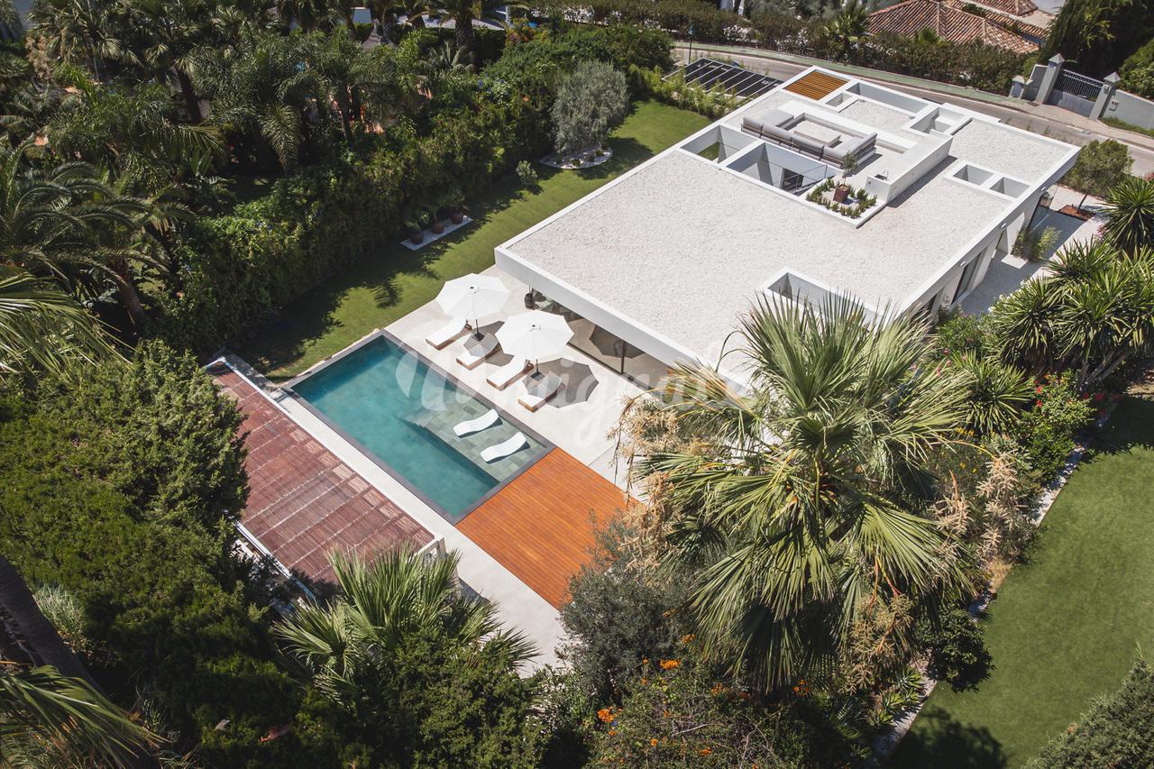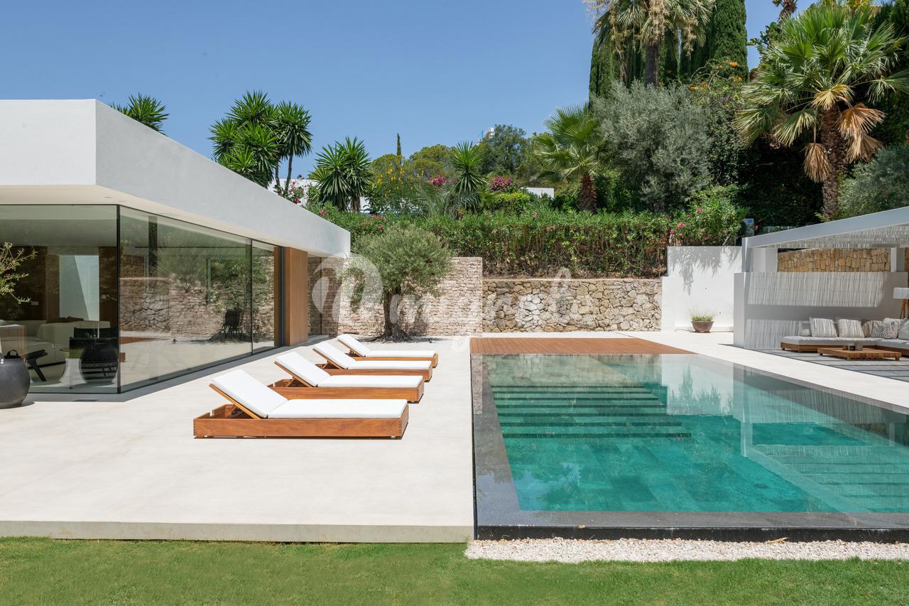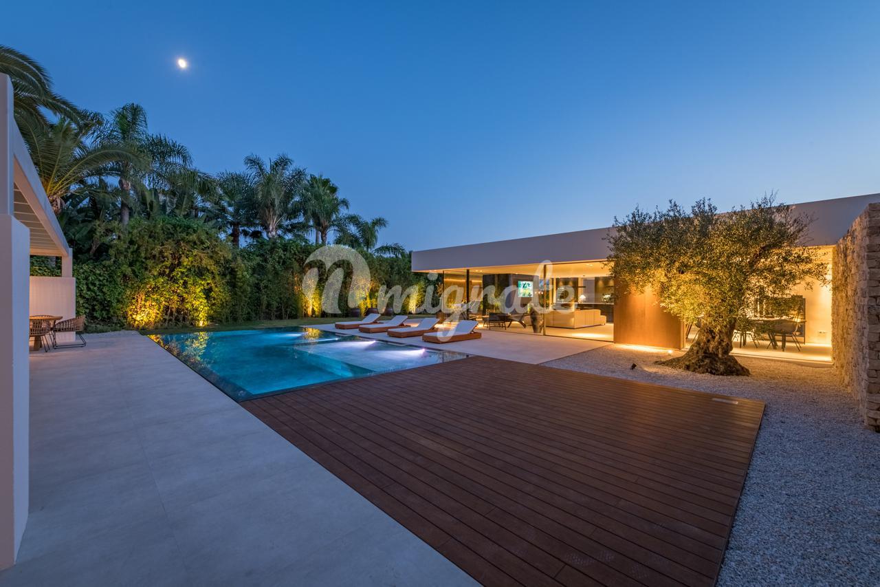 Бассейн с подогревом имеет деревянный настил и встроенные шезлонги, а также красивую чирингито с барбекю/кухней на открытом воздухе, обеденной зоной и полукрытой зоной отдыха. Домотехника, двойное остекление, сигнализация, стереосистема Dolby, резервуар для воды, видеодомофон и Wi-Fi/интернет, среди прочего.