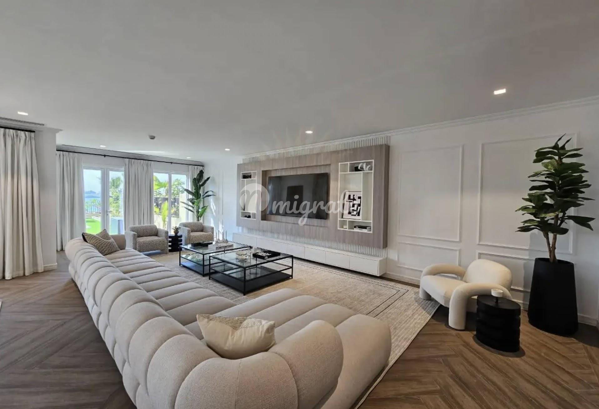 Современная жизнь на берегу моря, вдохновленная цветами морских раковин и мягкими формами, гармонирует с гладкими белыми пространствами и пальмами. Дизайн этой прекрасной виллы вдохновлен утонченным вкусом и высококачественным образом жизни. Внутренние помещения отличаются роскошью, но в то же время теплом и гостеприимством. Каждое помещение элегантно и продуманно до мелочей, что является четким отражением уникальной и изысканной роскошной резиденции. Этот архитектурно неотразимый злодей сочетает в себе моду, искусство и тенденции. Минималистичная светлая, но текстурированная базовая палитра используется в соответствии с архитектурным дизайном и подчеркивает пространства двойной высоты и потрясающие объемы по всей вилле. Эта базовая эстетика дополняется текстурами и цветами декоративной отделки, высококачественной фурнитурой и элементами декора, которые считаются гармонизирующей и обогащающей палитрой по отношению к основным материалам, используемым повсюду. Вилла состоит из 7 спален с ванными комнатами, 1 комнаты шеф-повара и 4 комнат для персонала.