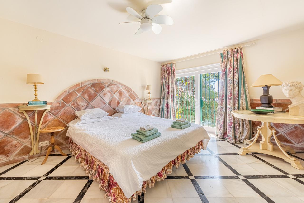 Эта удобно расположенная вилла в престижном поместье находится недалеко от Марбельи, торгового центра и всего в нескольких минутах езды от пляжа. Уединение и спокойствие гарантированы в этом прекрасном месте, граничащем со зрелыми садами с множеством деревьев и растений, двойным гаражом и бассейном, которые дополняют умиротворяющую атмосферу. Эта собственность находилась в хорошем состоянии на протяжении многих лет и предлагает удобную планировку на двух этажах. Жилье состоит из прихожей с гостевым туалетом, просторной гостиной с камином и обеденной зоной и выхода на крытую веранду с остроконечными деревянными потолками и барбекю. Из дома открывается вид на море и горы. На нижнем уровне вы найдете гостевой туалет, две спальни с общей ванной комнатой, гостиную / столовую и кухню открытой планировки. Все спальни выходят в сад с бассейном. Всего в доме 6 спален и 5 ванных комнат, включая отдельную двухкомнатную квартиру. Дом подключен к канализационной сети и может быть реконструирован и / или расширен до пределов, установленных Постановлением для этой области, поскольку они имеют полностью законный и полный городской статус.