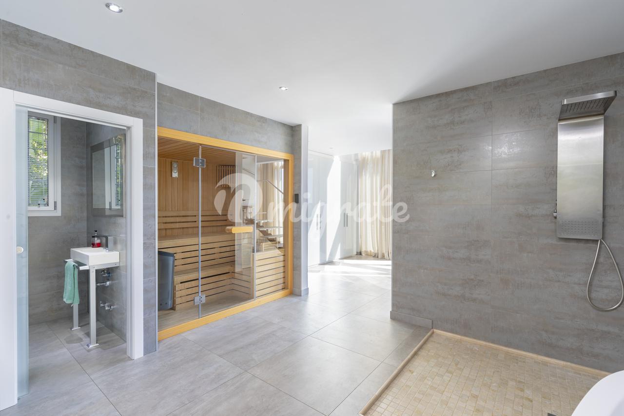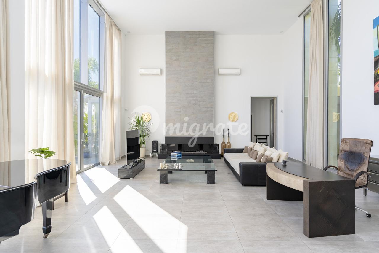 Первый этаж имеет открытую планировку с потолками двойной высоты и впечатляющими окнами от пола до потолка, которые позволяют свету и солнечному свету проникать внутрь. Вид на море, горы и бассейн прекрасен со всех сторон.