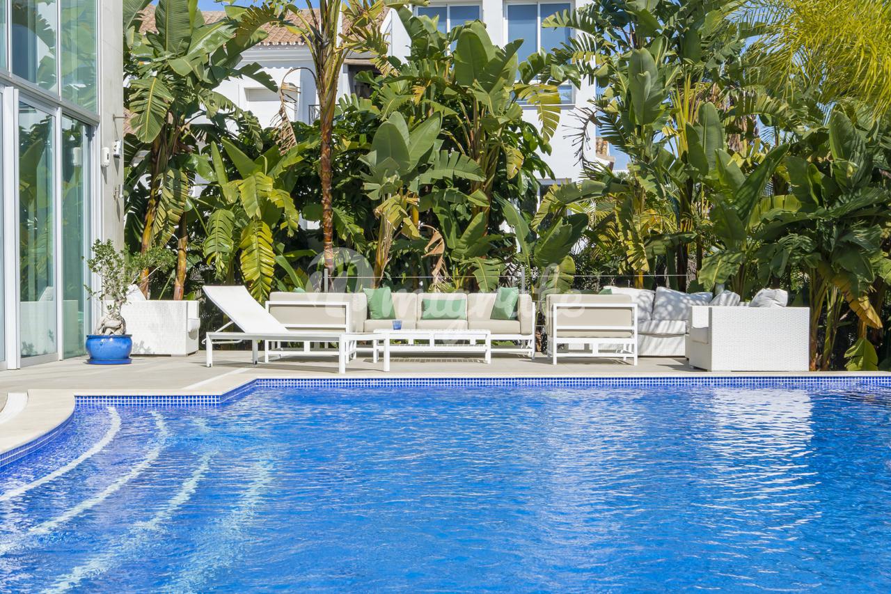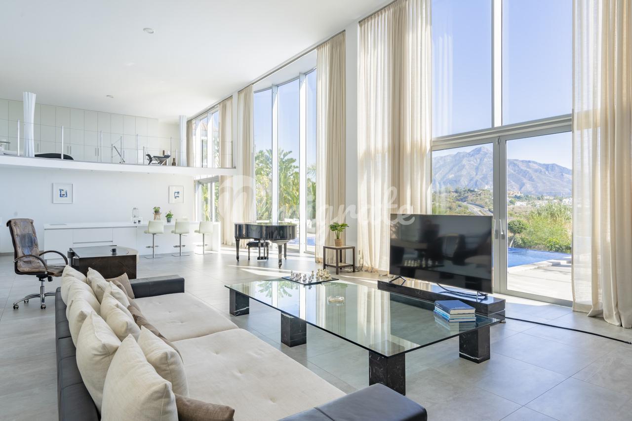 Эта вилла расположена на холмах Ла-Кинта, на возвышенности, с захватывающим видом на гору Ла-Конча и море, в нескольких минутах езды от Пуэрто-Бануса и всевозможных удобств.