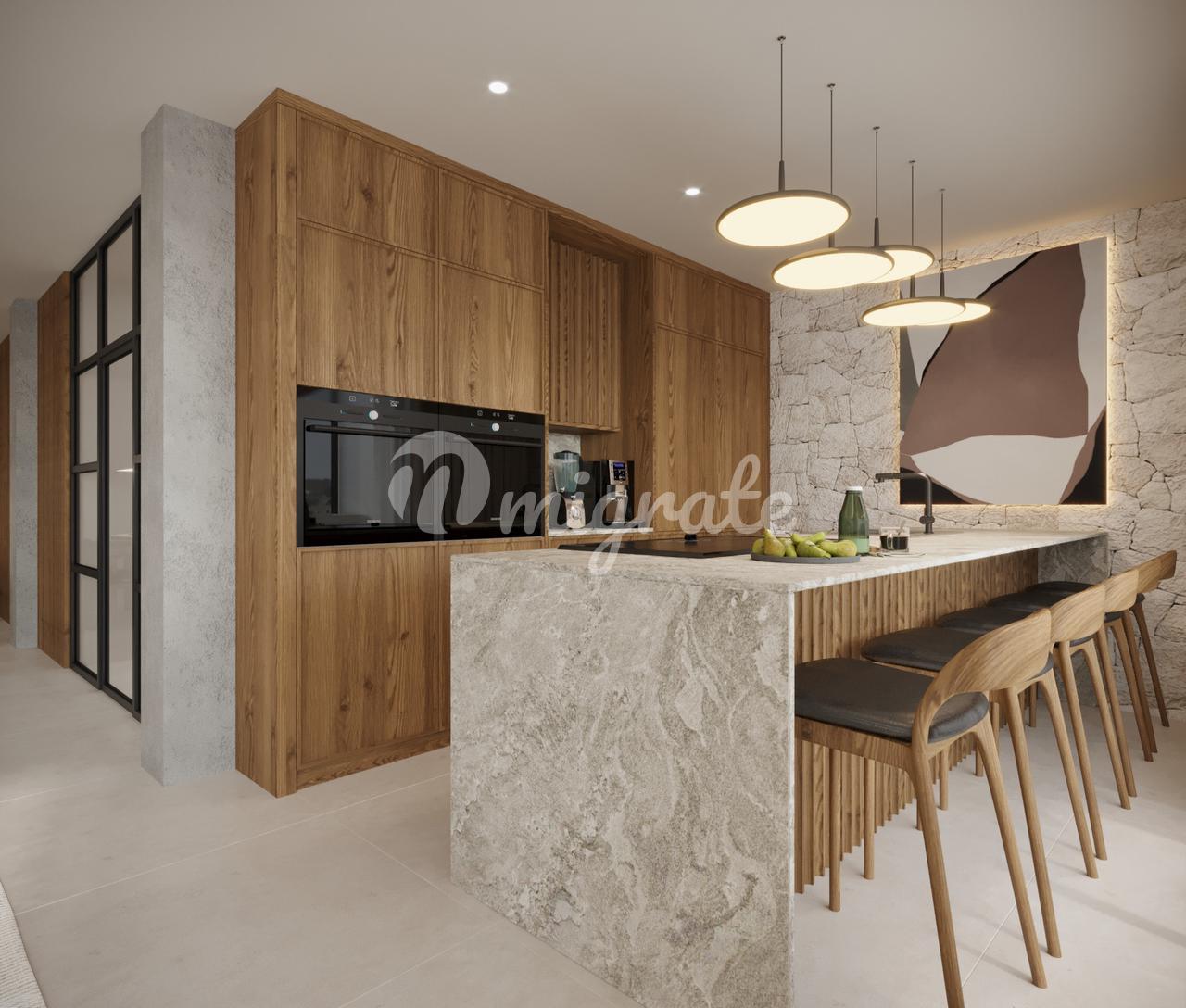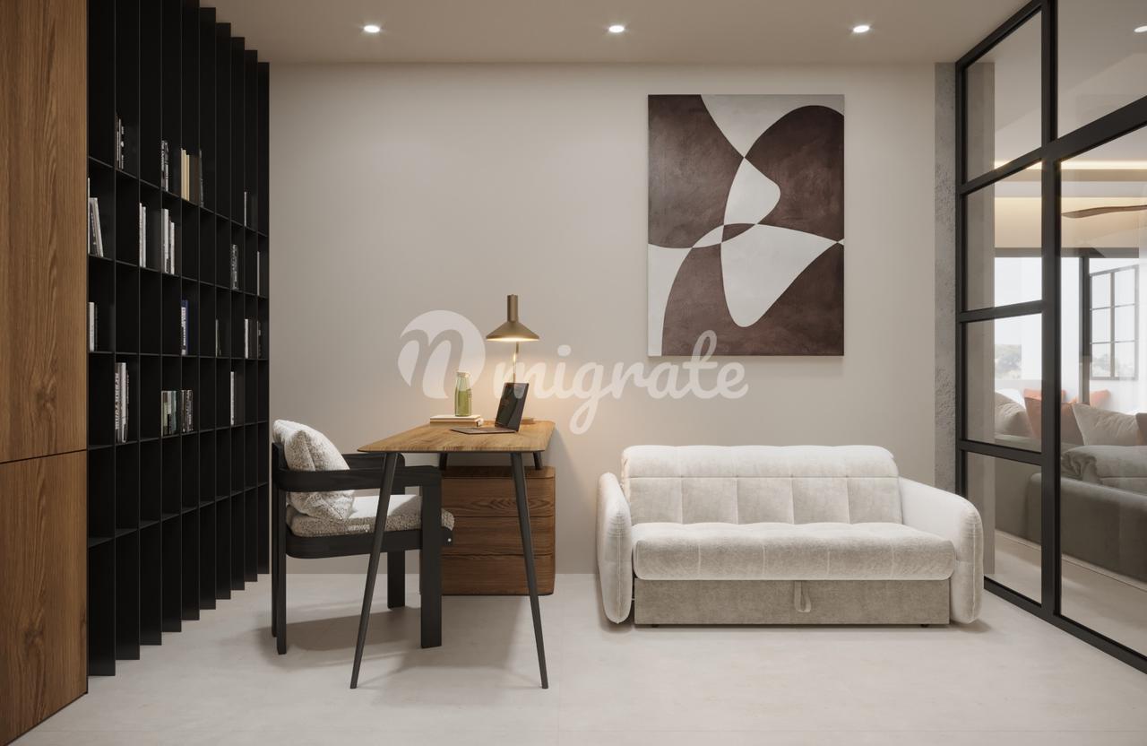 Эта квартира распределена следующим образом: гостиная с камином, кухня открытой планировки и обеденная зона, которые выходят на большую террасу через 2 окна от пола до потолка, большая главная спальня с собственной ванной комнатой и еще одна спальня с ванной комнатой. К гостиной примыкает кабинет / спальня, которая идеально подходит для гостей.