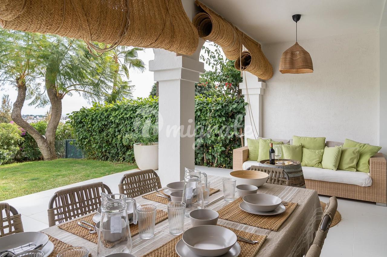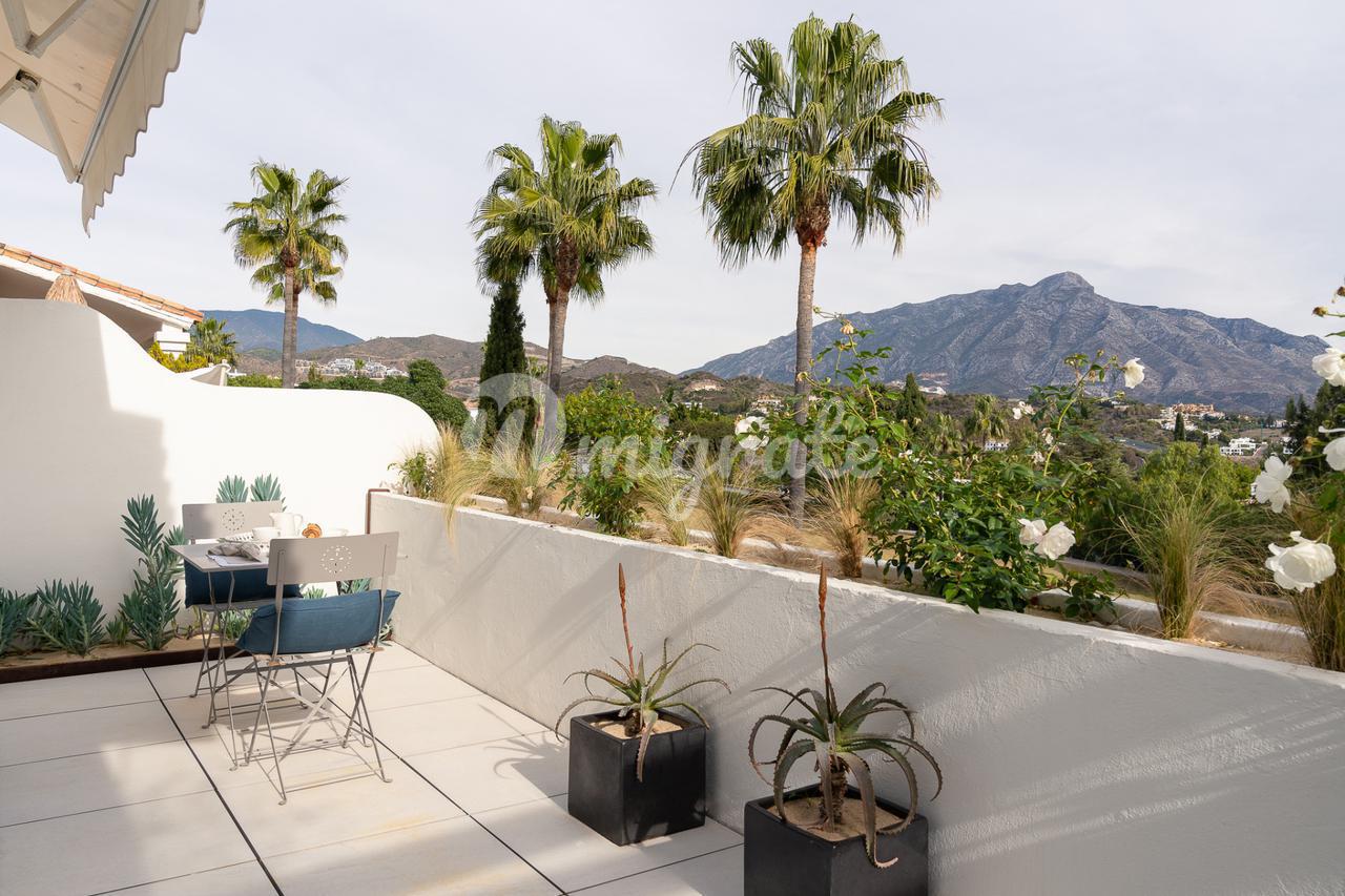 Этот полностью отремонтированный таунхаус с видом на поле для гольфа, море и горы расположен в закрытом комплексе La Quinta примерно в 6 км от пляжа и знаменитого Пуэрто Бануса с его знаменитой гаванью с роскошными катерами и яхтами, модными бутиками, ресторанами изысканной кухни, пабами и великолепными магазинами.
