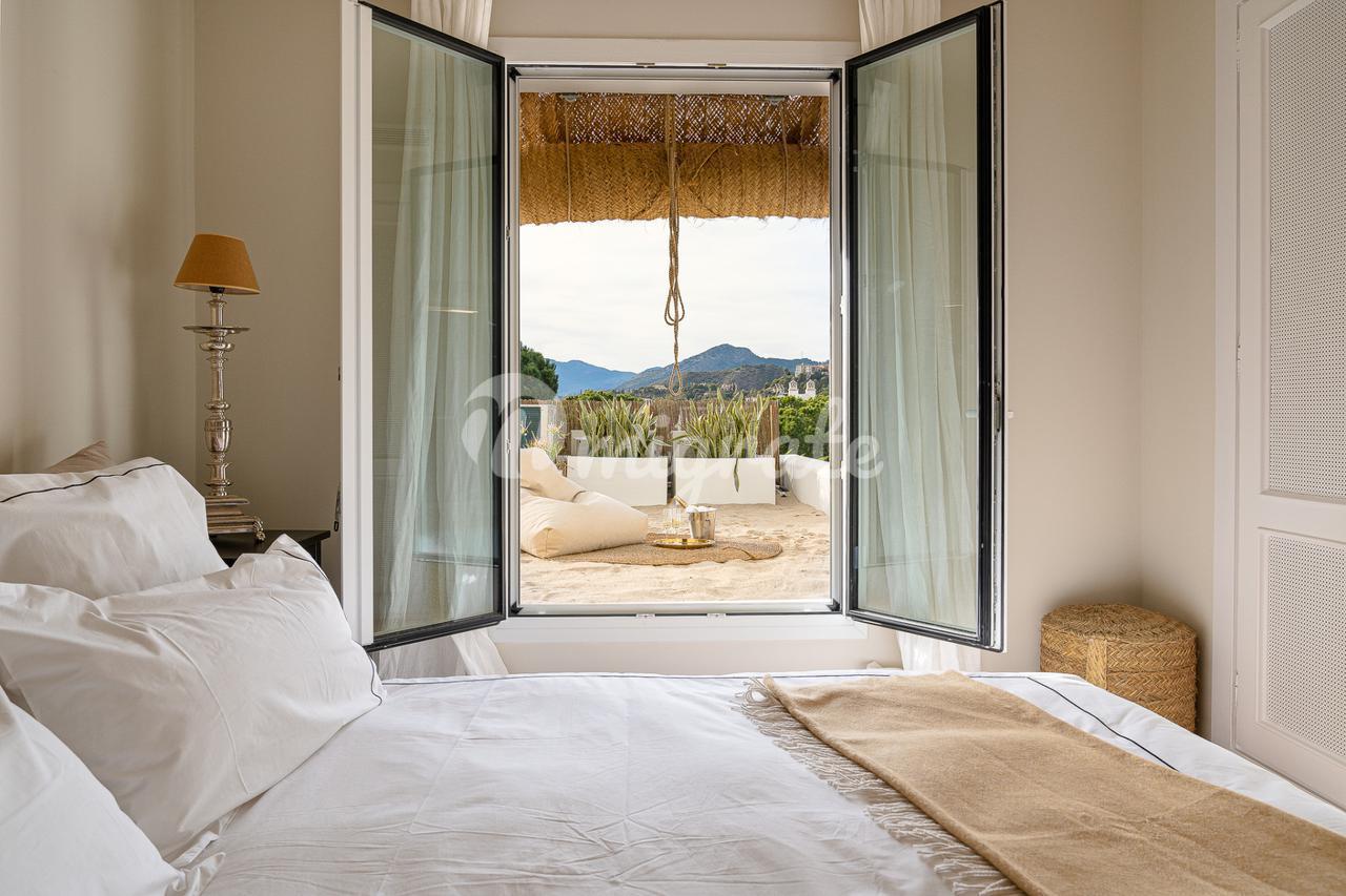 Верхний этаж полностью занимает просторная главная спальня с собственной ванной комнатой, гардеробной и собственной террасой с видом на море и горы.