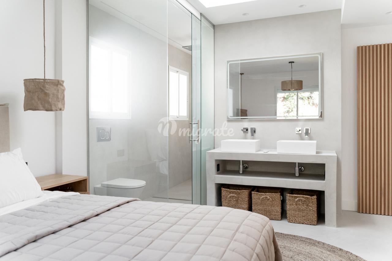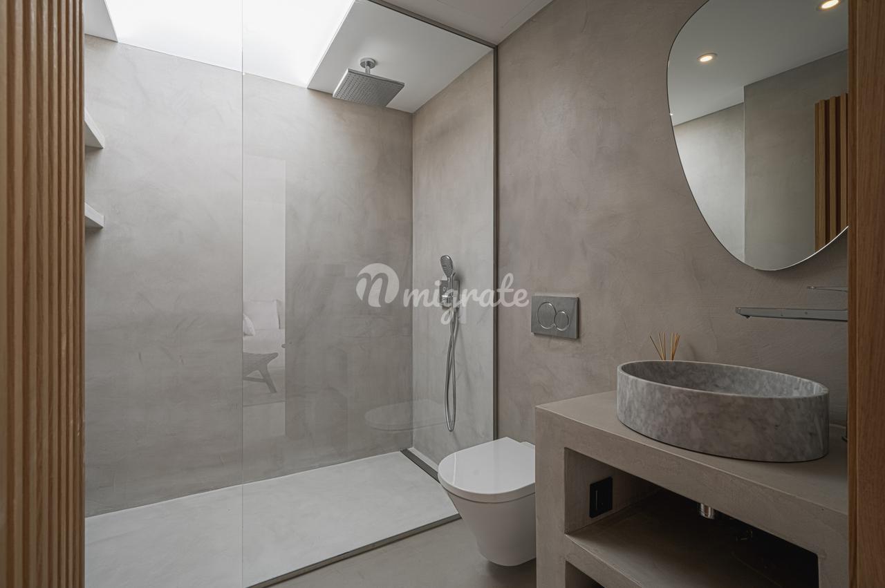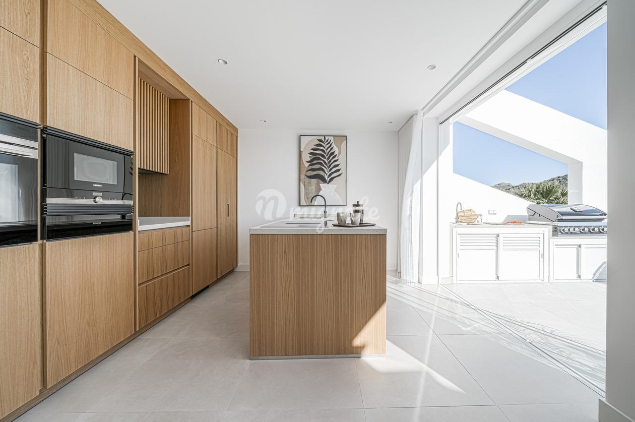 В доме есть 2 спальни и 2 ванные комнаты, а также впечатляющая открытая площадка. Широкие стеклянные двери ведут из гостиной и кухни на главную террасу, где вы можете наслаждаться видом из бара, готовя барбекю. Лестница ведет на огромную террасу на крыше с уютным лаунджем на заказ с камином, шезлонгами и второй зоной отдыха, откуда открывается потрясающий вид и царит спокойствие.