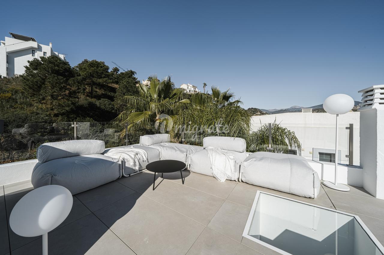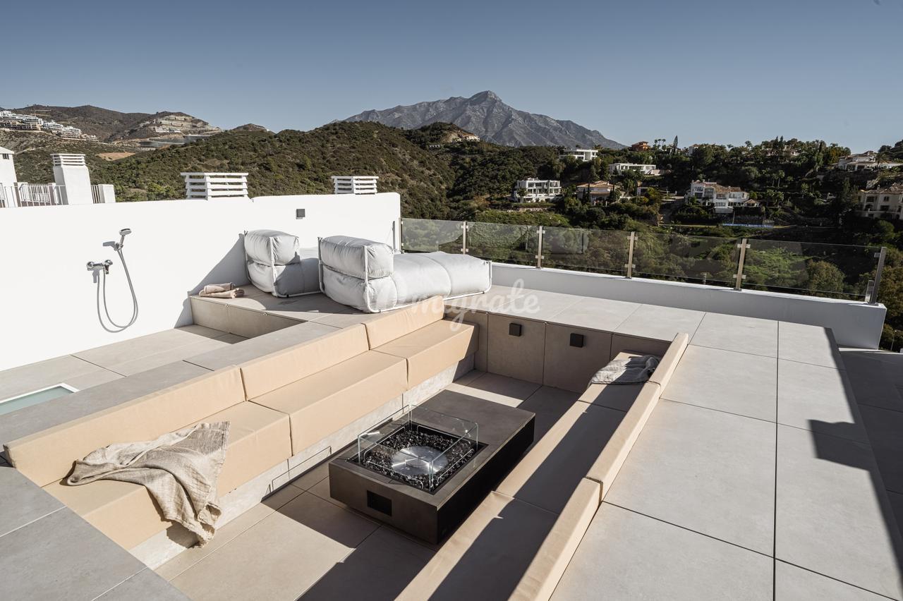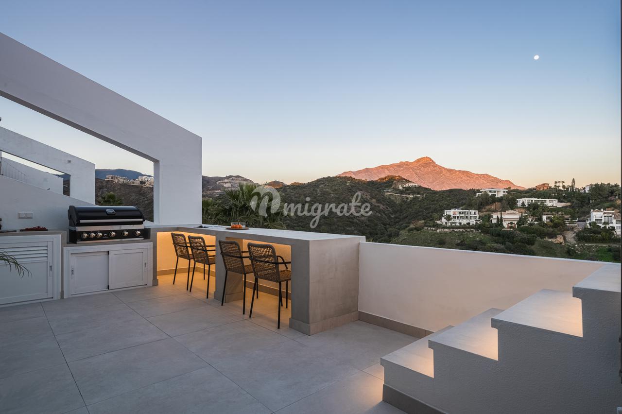 Ла Кинта - прекрасный тихий район, расположенный примерно в 6 километрах от пляжа Пуэрто Банус и в 10 километрах от Марбельи. Это очень популярное место для проживания или проведения незабываемого отпуска в атмосфере загородного клуба. Этот район отличается мягким и приятным климатом и славится своими прекрасными видами на поле для гольфа. Это также элитный жилой район с частными виллами, роскошными квартирами и одними из лучших таунхаусов в регионе Марбелья. Casa Vista - это отремонтированный пентхаус общей площадью около 81 м2 и террасой площадью около 125 м2. Из окон открывается панорамный вид на горы, поле для гольфа и море. Квартира выходит окнами на юго-восток и была полностью отремонтирована в скандинавском стиле, что нашло отражение в тщательном выборе материалов, таких как дерево, микроцемент и плитка, что придает ей уникальный современный и теплый бохо-стиль.