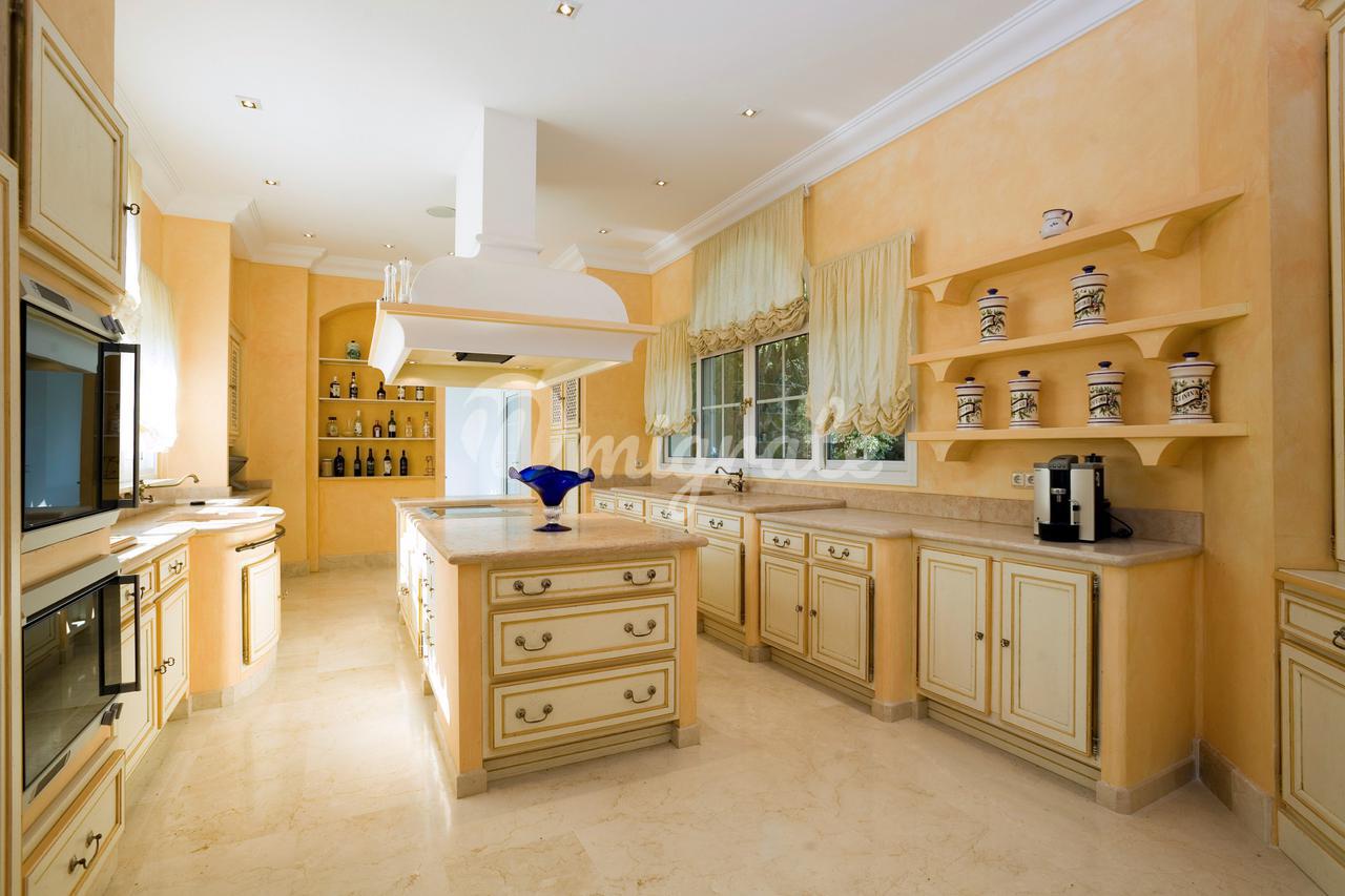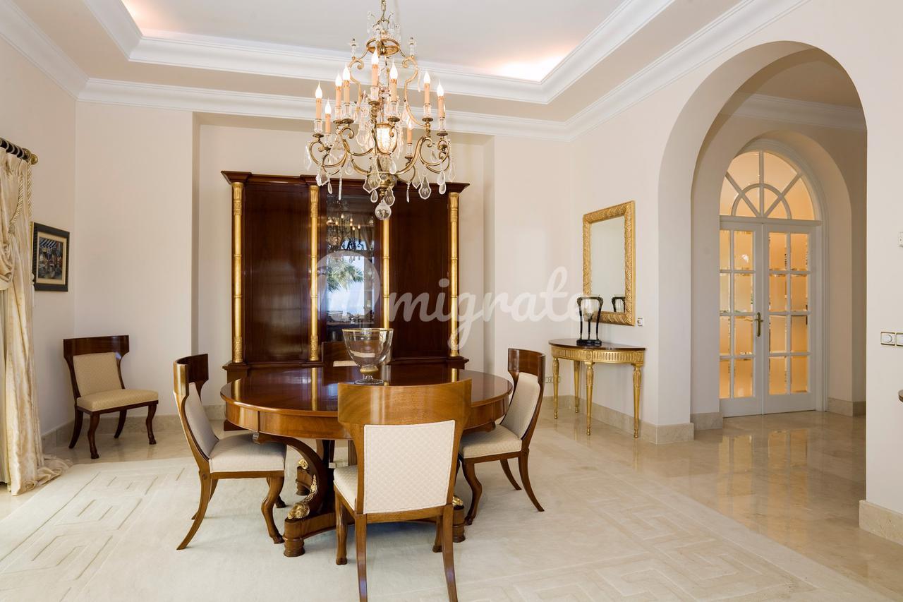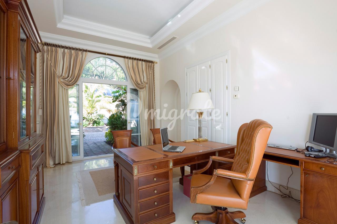 Завершенный в 2001 году, с беспрепятственным видом на море, расположенный в одной из самых высоких точек Ла Загалета и, без сомнения, на одном из лучших участков в поместье. Основной уровень: вход из вестибюля с гостевым туалетом и внушительной лестницей-бабочкой, в гостиной есть камин и обширные двери на террасу. Столовая с эркером обслуживается кухней с мраморными столешницами, центральным островком и техникой Gaggenau. На противоположной стороне дома находится кабинет, выходящий на террасу и подъезд, и две спальни, одна с ванной комнатой с мраморными стенами, гардеробной и просторной террасой. Вход в главную спальню на верхнем этаже осуществляется через двойные двери. В большой главной ванной комнате есть круглая гидромассажная ванна в эркере и душевая кабина. Здесь есть гардеробная с зеркальными дверями-гардеробы и огромная открытая терраса с прекрасным видом. На нижнем уровне сада находится гостевой дом со столовой-кухней, спальней с гардеробной и собственной душевой. Также имеется просторная гостиная с выходом на террасу. Этот прочный и элегантный дом включает в себя бассейн произвольной формы без горизонта, спутниковое телевидение, автоматические спринклеры, полы с подогревом, гараж на 3 машины, навес для машины, кондиционеры в спальнях, окна из ПВХ с противомоскитными сетками и двойное остекление. Эксклюзивный мраморный пол, скрытое освещение, впечатляющие входные ворота и подъездная дорожка.