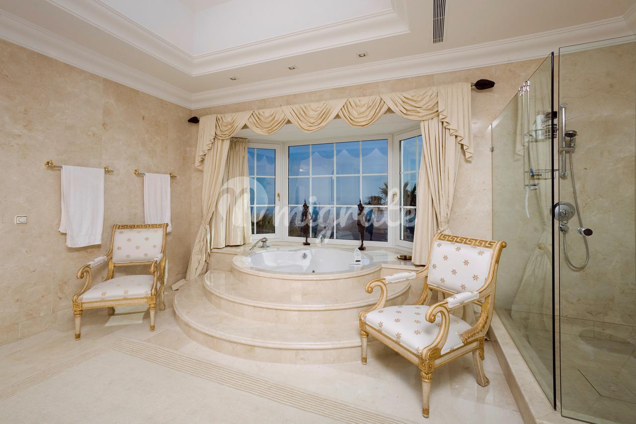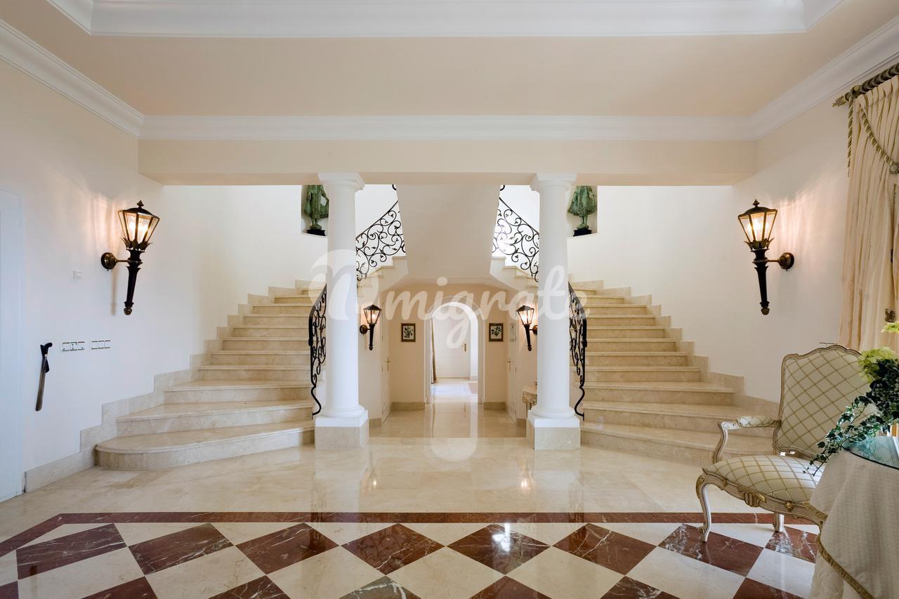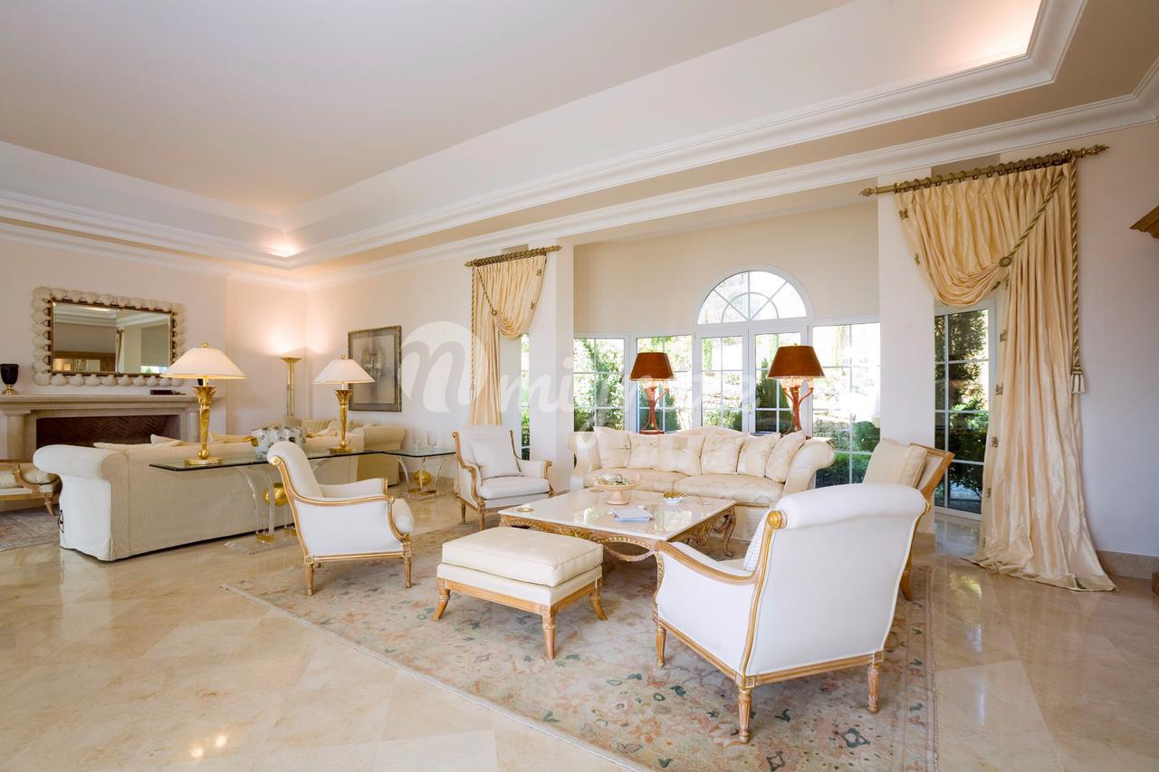 Завершенный в 2001 году, с беспрепятственным видом на море, расположенный в одной из самых высоких точек Ла Загалета и, без сомнения, на одном из лучших участков в поместье. Основной уровень: вход из вестибюля с гостевым туалетом и внушительной лестницей-бабочкой, в гостиной есть камин и обширные двери на террасу. Столовая с эркером обслуживается кухней с мраморными столешницами, центральным островком и техникой Gaggenau. На противоположной стороне дома находится кабинет, выходящий на террасу и подъезд, и две спальни, одна с ванной комнатой с мраморными стенами, гардеробной и просторной террасой. Вход в главную спальню на верхнем этаже осуществляется через двойные двери. В большой главной ванной комнате есть круглая гидромассажная ванна в эркере и душевая кабина. Здесь есть гардеробная с зеркальными дверями-гардеробы и огромная открытая терраса с прекрасным видом. На нижнем уровне сада находится гостевой дом со столовой-кухней, спальней с гардеробной и собственной душевой. Также имеется просторная гостиная с выходом на террасу. Этот прочный и элегантный дом включает в себя бассейн произвольной формы без горизонта, спутниковое телевидение, автоматические спринклеры, полы с подогревом, гараж на 3 машины, навес для машины, кондиционеры в спальнях, окна из ПВХ с противомоскитными сетками и двойное остекление. Эксклюзивный мраморный пол, скрытое освещение, впечатляющие входные ворота и подъездная дорожка.