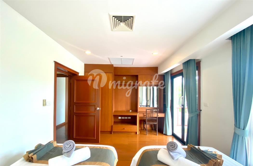 Вилла расположена в расслабляющей обстановке поля для гольфа Laguna, которое является идеальным домом для тех, кто увлечен гольфом. Он построен в стиле классического таунхауса с красивым тайским декором в сочетании с традиционной мебелью и частным бассейном. На эту виллу можно попасть либо через главную дверь навеса, либо через внутренний двор с бассейном на поле для гольфа. Входная дверь из навеса для двух автомобилей ведет в холл виллы, обеспечивая доступ к кухне, гостиной, столовой и бассейну или вверх по деревянной лестнице к спальным помещениям.