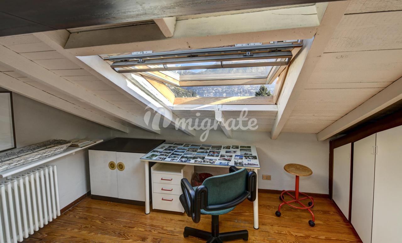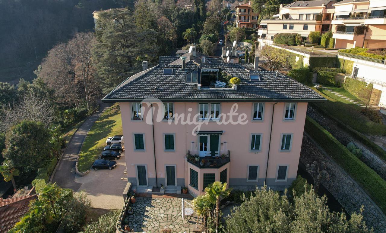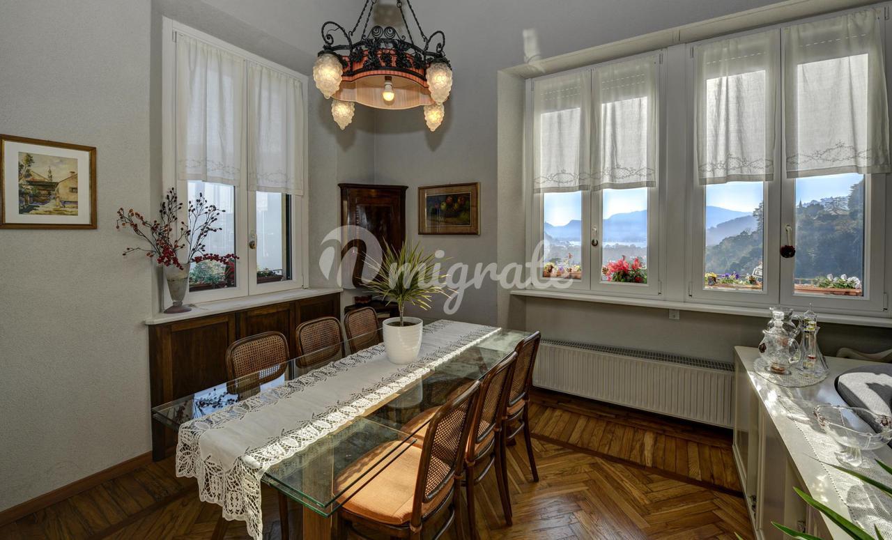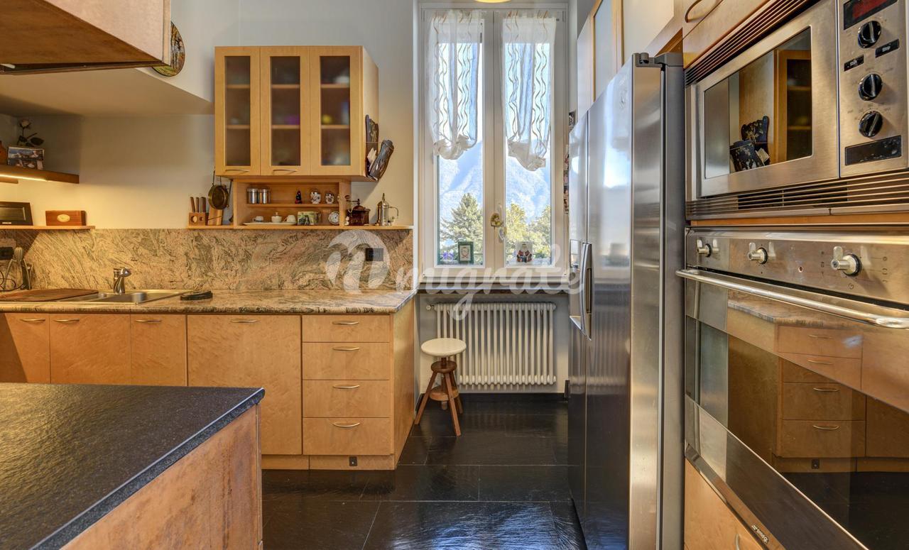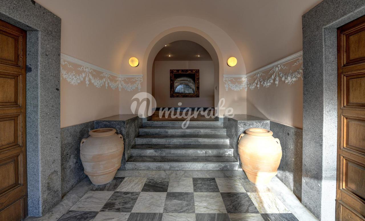 Он состоит из прихожей, большой гостиной с обеденной зоной и камином, кухни-столовой, подсобного помещения, главной спальни с гардеробной и ванной комнатой с сауной, второй спальни и ванной комнаты. . На верхнем этаже находится вторая гостиная с видом на главную, терраса, спальня и ванная комната. Квартира является частью эксклюзивного старинного здания, разделенного на несколько жилых единиц и расположенного в многовековом парке площадью более 10 000 кв. м, всего в двух шагах от центра города Черноббио, берега озера и всех услуг.