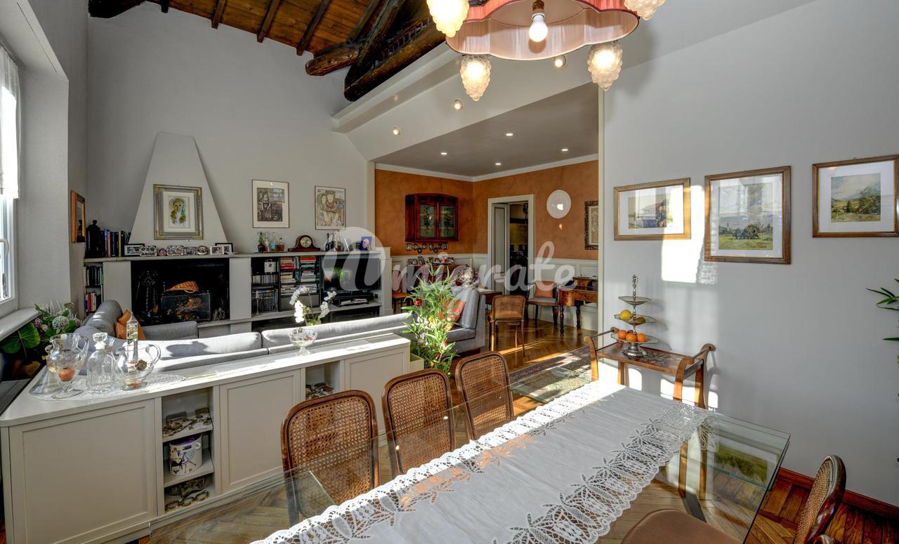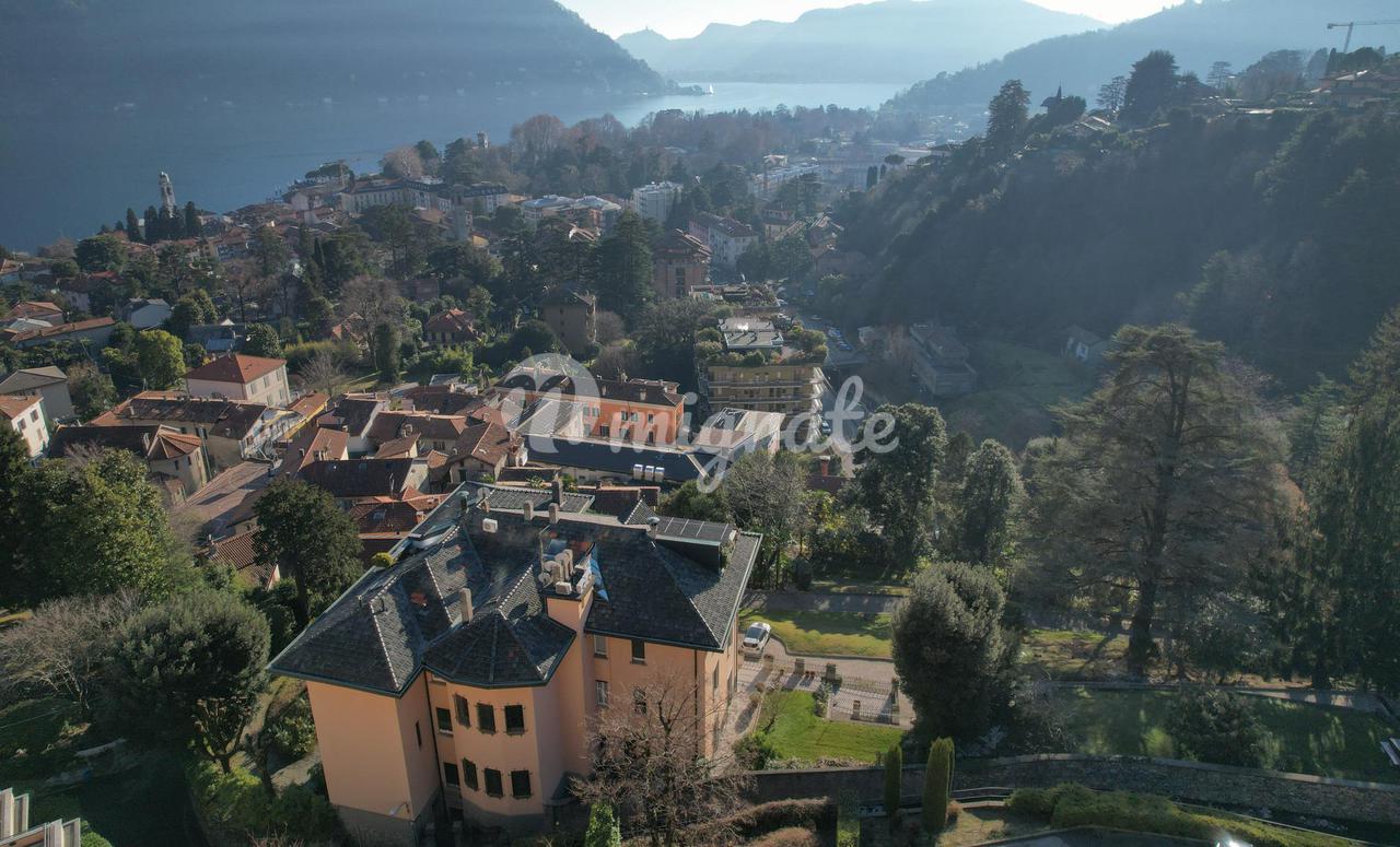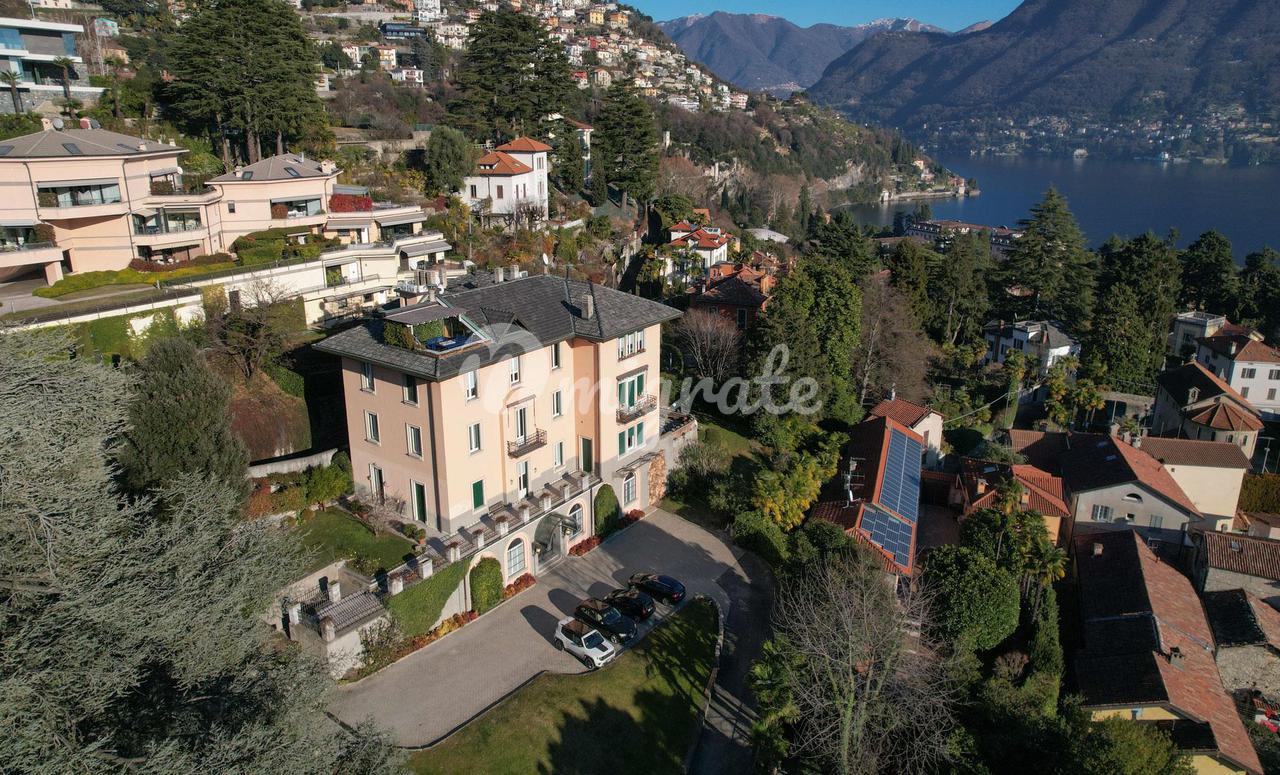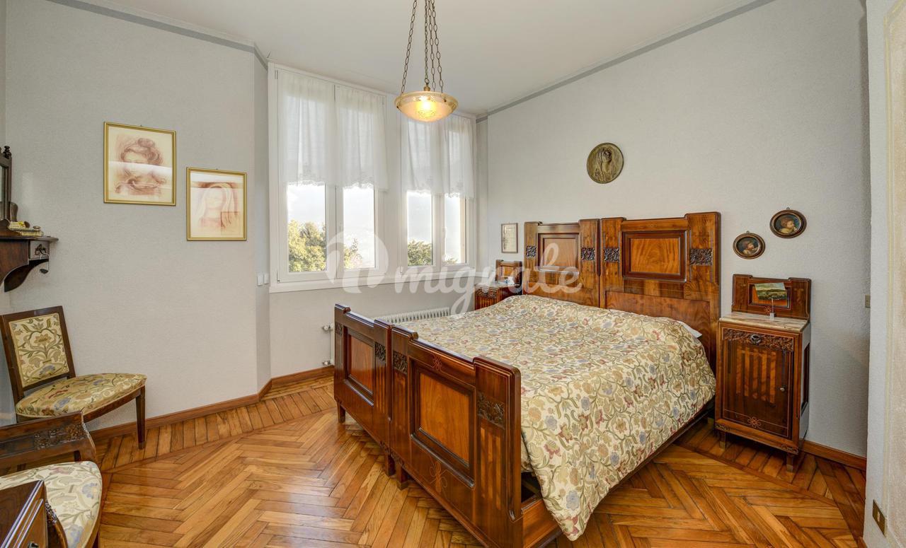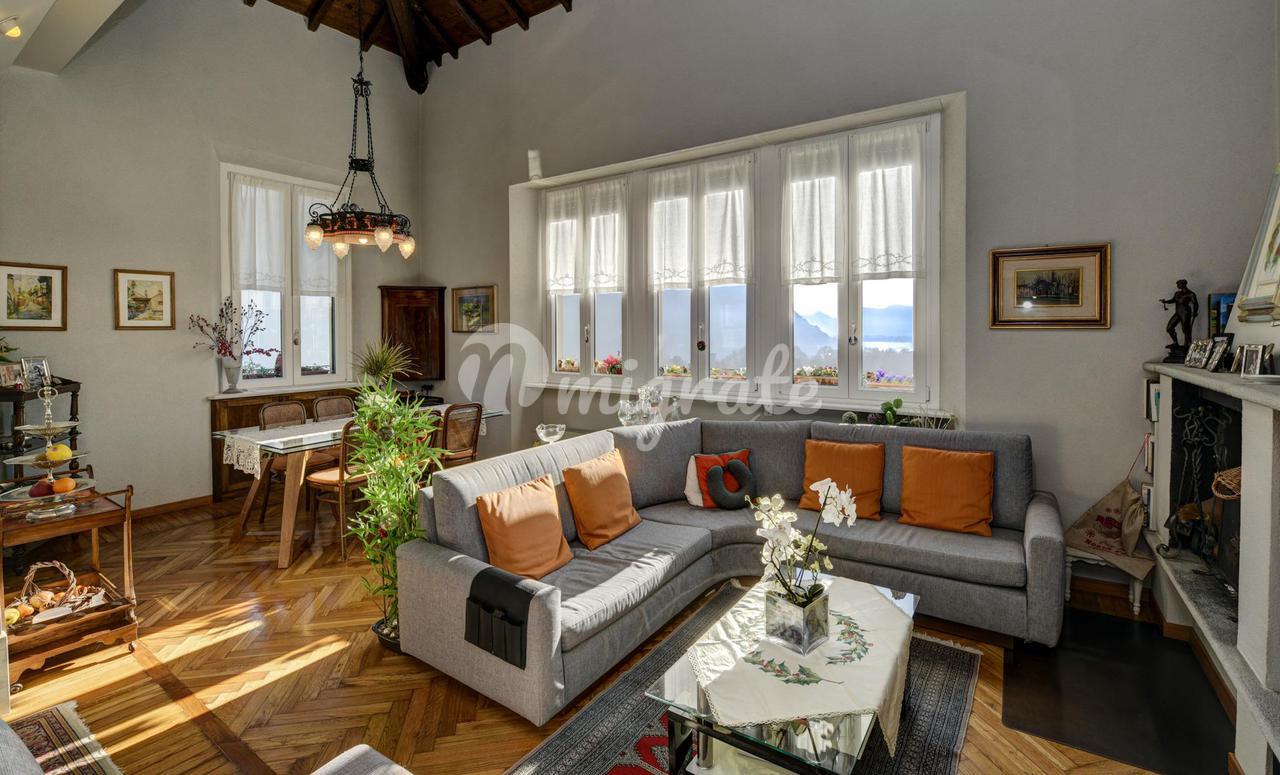 Он состоит из прихожей, большой гостиной с обеденной зоной и камином, кухни-столовой, подсобного помещения, главной спальни с гардеробной и ванной комнатой с сауной, второй спальни и ванной комнаты. . На верхнем этаже находится вторая гостиная с видом на главную, терраса, спальня и ванная комната. Квартира является частью эксклюзивного старинного здания, разделенного на несколько жилых единиц и расположенного в многовековом парке площадью более 10 000 кв. м, всего в двух шагах от центра города Черноббио, берега озера и всех услуг.