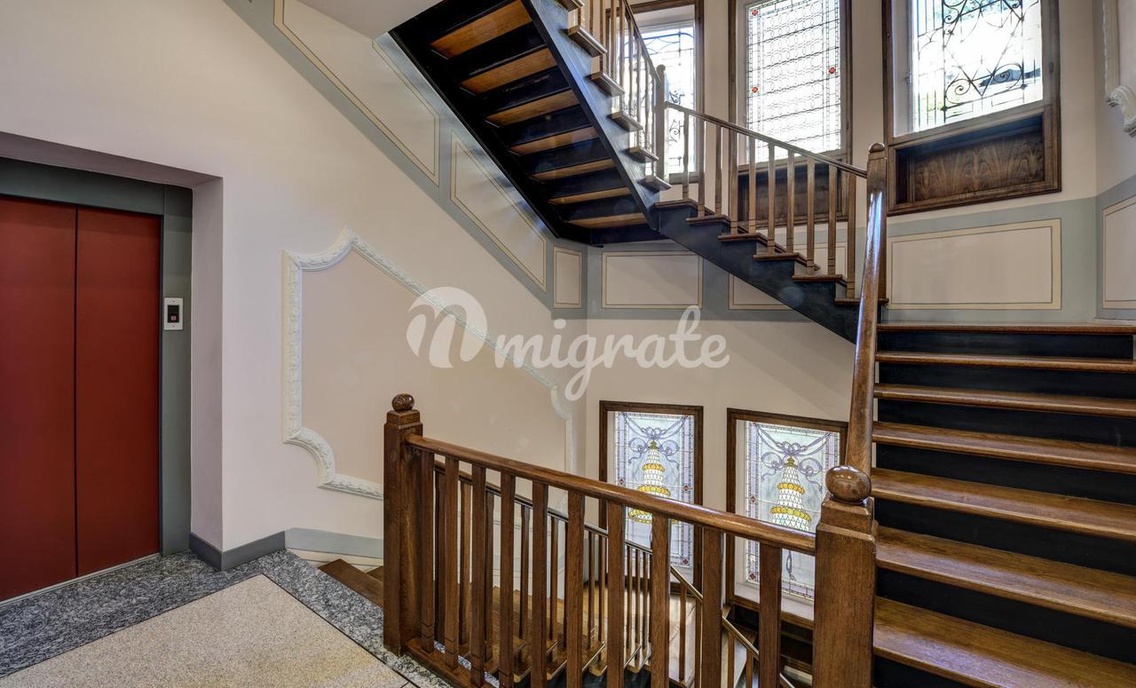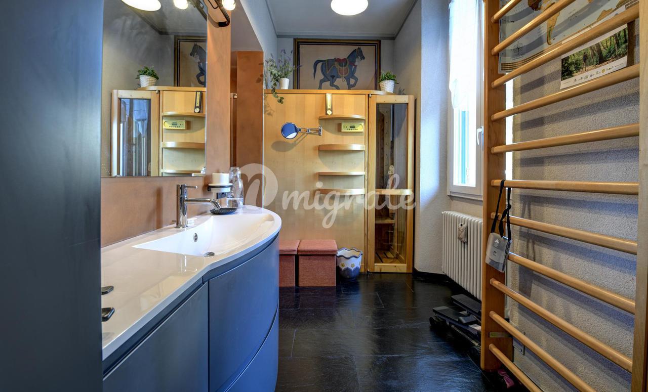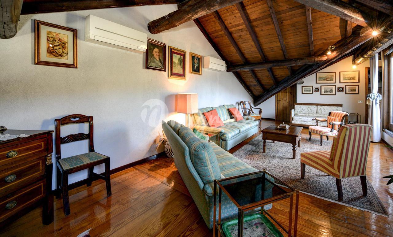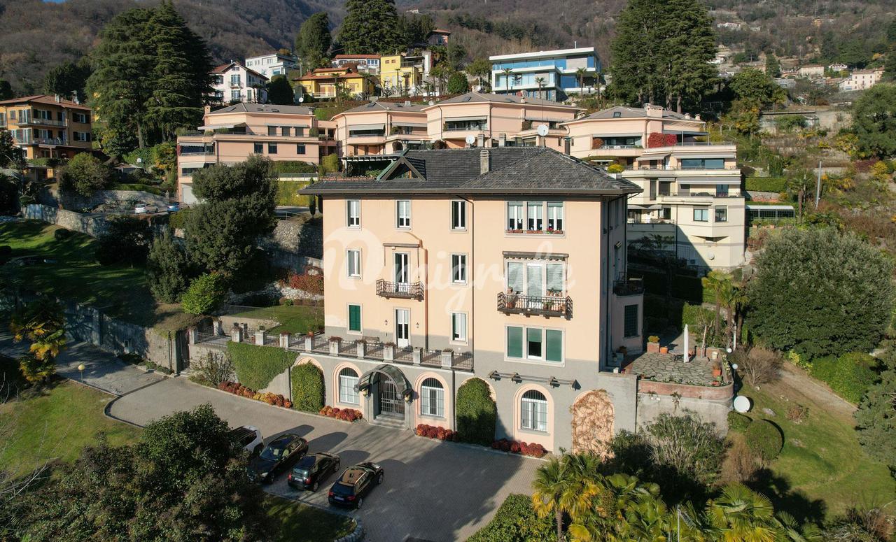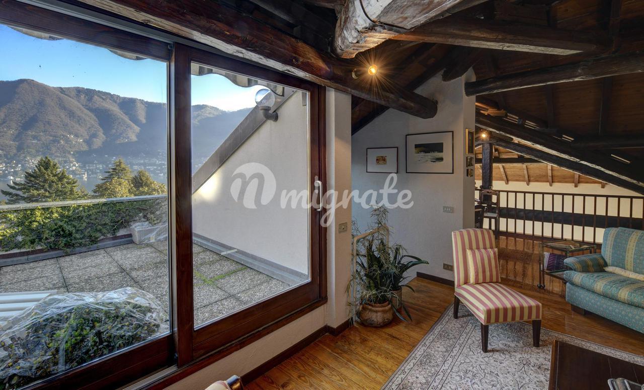 Он состоит из прихожей, большой гостиной с обеденной зоной и камином, кухни-столовой, подсобного помещения, главной спальни с гардеробной и ванной комнатой с сауной, второй спальни и ванной комнаты. . На верхнем этаже находится вторая гостиная с видом на главную, терраса, спальня и ванная комната. Квартира является частью эксклюзивного старинного здания, разделенного на несколько жилых единиц и расположенного в многовековом парке площадью более 10 000 кв. м, всего в двух шагах от центра города Черноббио, берега озера и всех услуг.