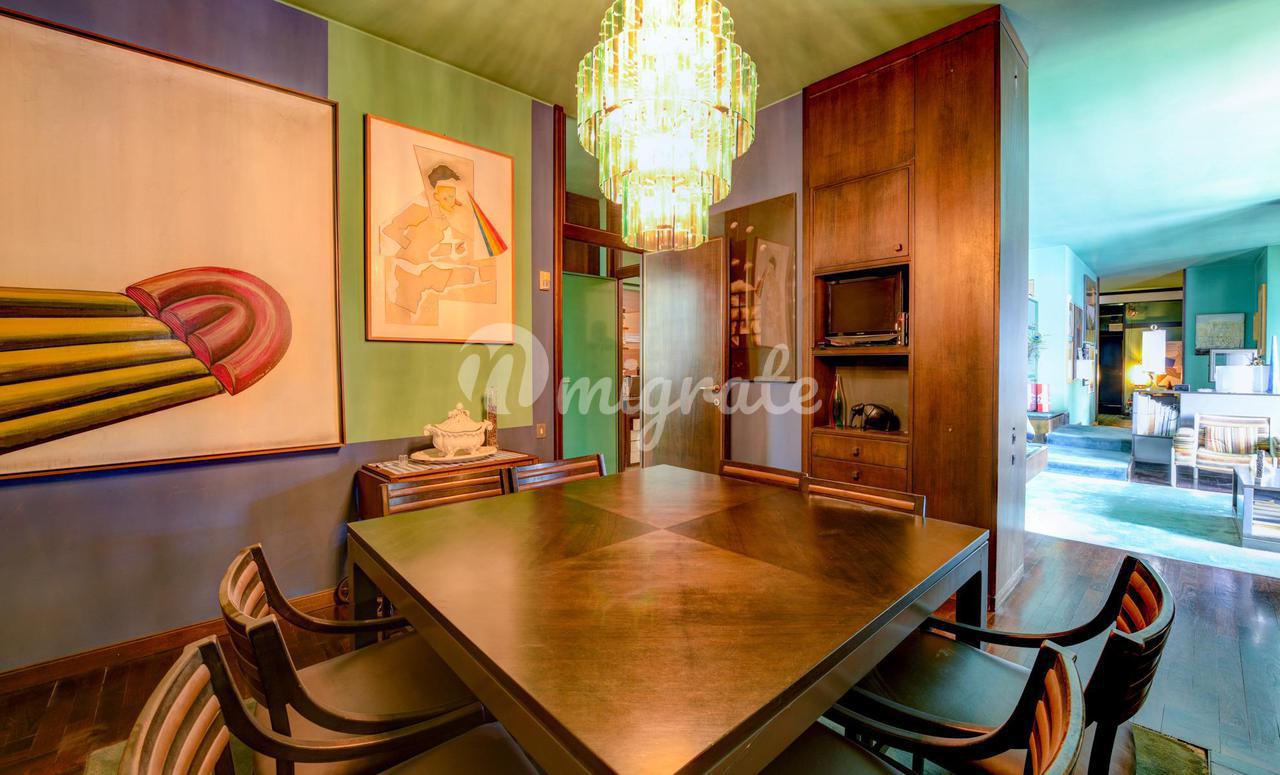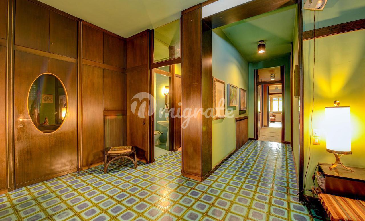 Второй этаж состоит из большой прихожей, двойной гостиной с камином, дополнительной гостиной меньшего размера, столовой, кухни и спальни с ванной комнатой для прислуги. Коридор ведет в прачечную и гладильную зону площадью около 30 кв.м на нижнем этаже, включающую спальню с ванной комнатой, главную спальню с гардеробной и смежной ванной комнатой.