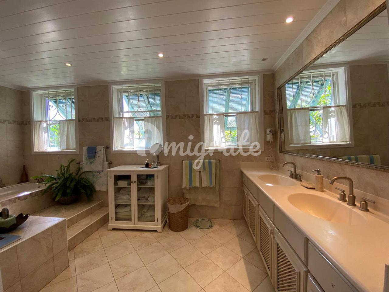 Это самый большой участок на этом хребте с впечатляющим 225-футовым фасадом с видом на океан. Расположение на гребне уникально, поскольку оно окружено землями, принадлежащими королевскому полю для гольфа Westmoreland, а овраг вдоль восточной границы обеспечивает естественное отделение от любой будущей застройки, гарантируя покой и уединение. Главная вилла была отремонтирована и включает в себя большую столовую и гостиную, полностью оборудованную кухню, просторную террасу с видом на бассейн и панорамным видом на море. Существует спальное крыло, в котором есть главная спальня с ванной комнатой и отдельным кабинетом, а также еще три гостевые спальни с двумя общими ванными комнатами.