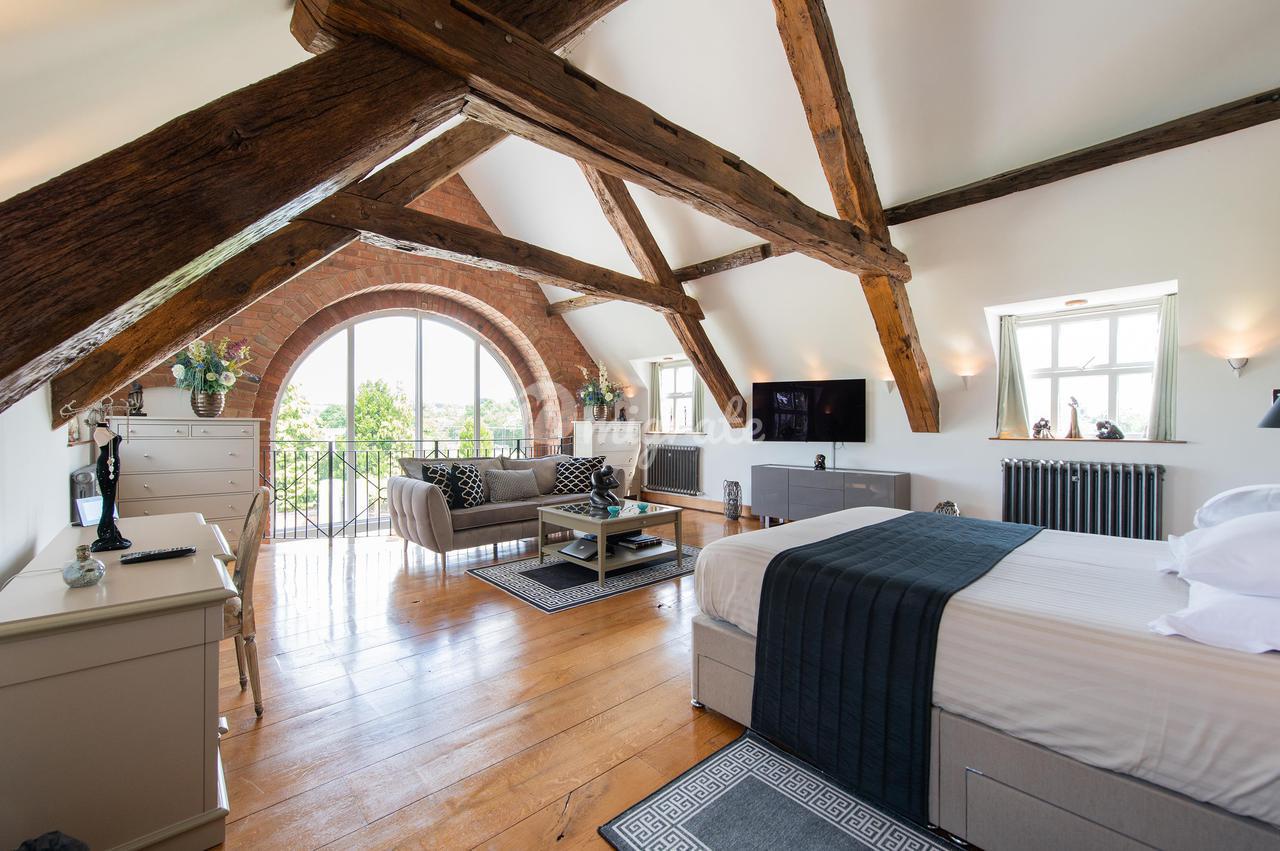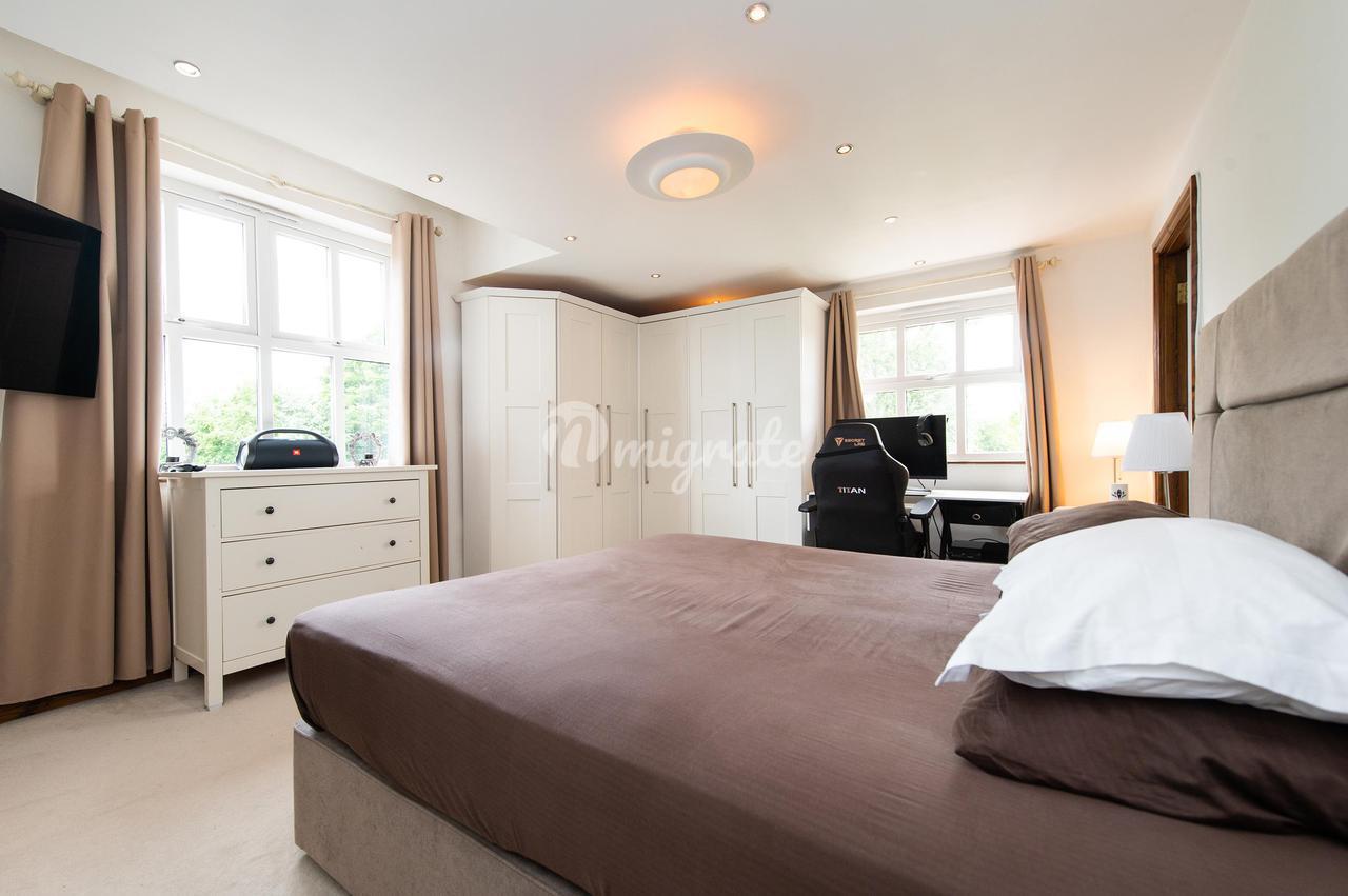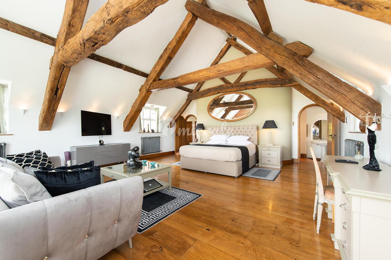 На втором этаже большая лестничная площадка также выигрывает от сводчатого потолка и высокого окна над залом приемов. В четвертой спальне с двуспальной кроватью есть собственная душевая комната и гардеробная. В распоряжении гостей семейная ванная комната и кладовая с подсветкой на крыше. Пятая спальня с двуспальной кроватью оснащена встроенными шкафами и в настоящее время используется как кабинет. Шестая спальня с двуспальной кроватью в настоящее время используется в качестве гардеробной.