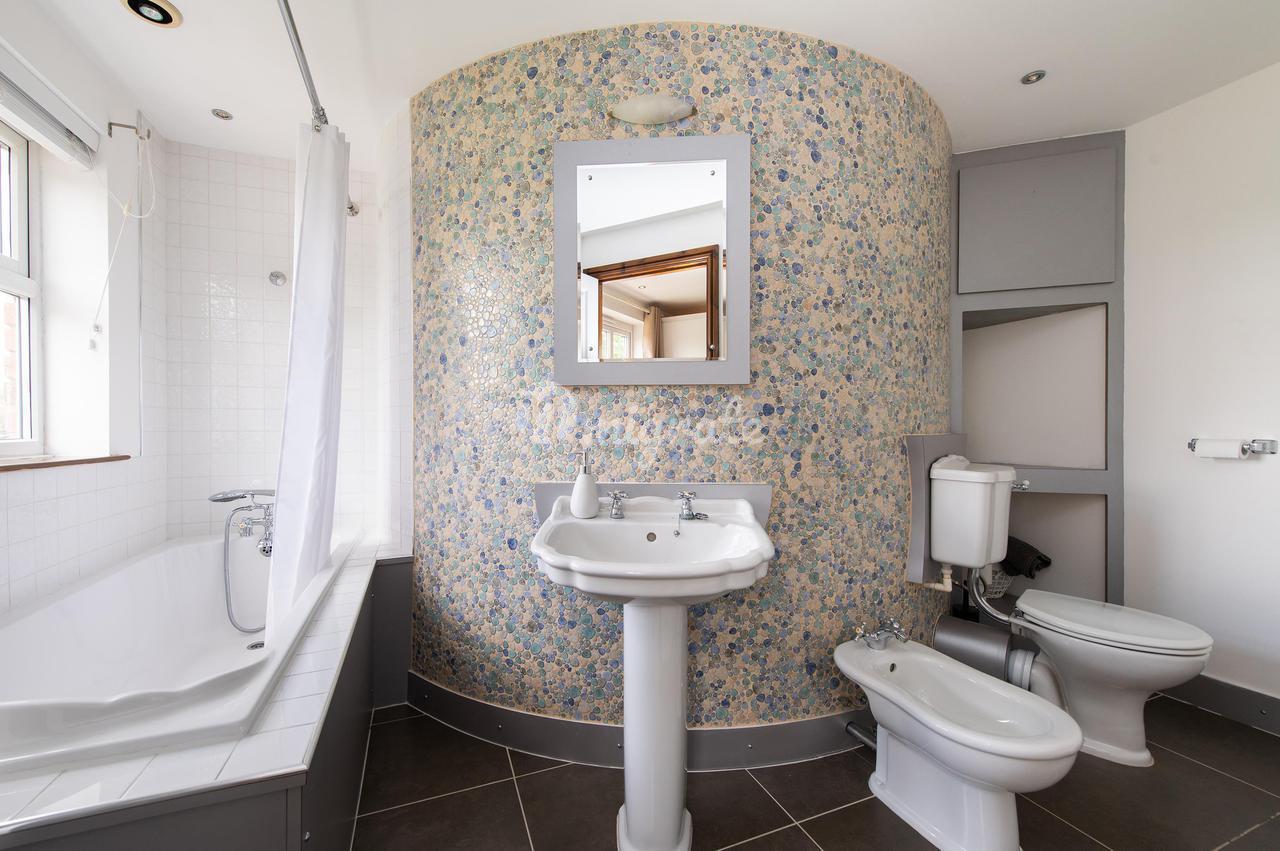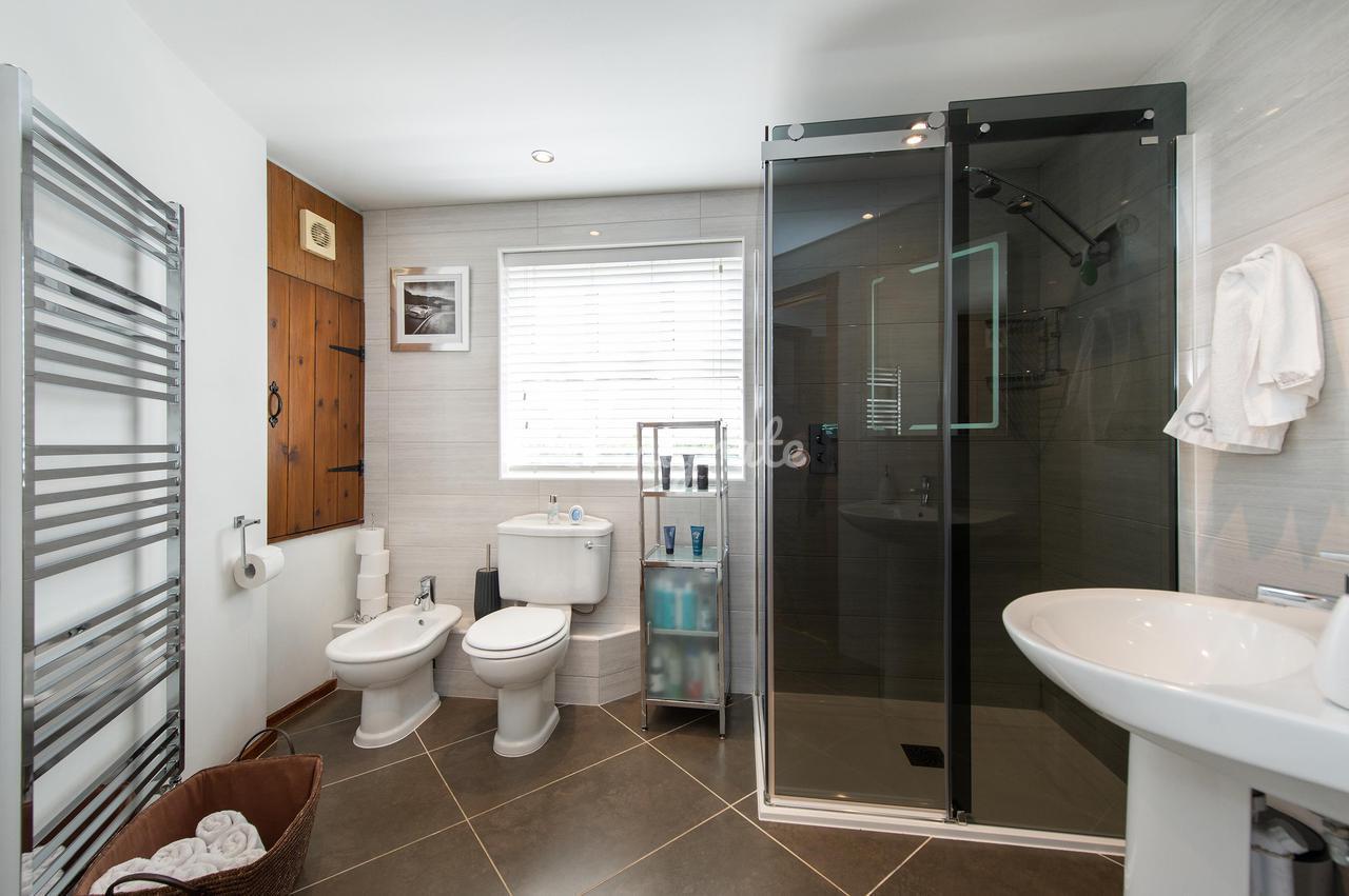 Застекленная веранда ведет в частично сводчатый зал для приемов с полом из каменных плит и потрясающей каменной лестницей с перилами из кованого железа. Гостиная трехместная, с деревянным полом и выложенным камнем камином с дровяной печью и французскими дверями во внутренний дворик. Семейный номер двухуровневый, с раздвижным окном во всю высоту, соединяющим патио с дверями на террасу, полом, выложенным керамической плиткой, и камином inglenook с деревянной перемычкой и окнами inglenook. Комната переходит широкой аркой в столовую / садовую комнату с застекленной крышей, заливающей комнату светом, и двустворчатыми дверями, выходящими на террасу, плиточным полом и настенным камином. Коридор ведет мимо подсобного помещения со шкафами, раковиной и гранитной столешницей к прекрасно оборудованной кухне с широким ассортиментом встроенных кухонных гарнитуров и бытовой техники, духовками, большими раковинами из нержавеющей стали с двойной чашей и большим островом с приборами Gaggenau, предназначенными для приготовления пищи на профессиональном уровне с помощью всплывающих окон. вытяжка с барной стойкой и четырехкамерной духовкой blue Aga, обжигаемой на масле. В главной спальне большое окно во всю высоту фронтона, общее с семейной комнатой внизу, откуда открывается обширный вид. С открытой кирпичной кладкой и сводчатым потолком с массивными деревянными стропилами, широким полом, обшитым дубовыми досками, роскошной ванной комнатой с декоративным освещением, круглой ванной, отделанной медными панелями, большой душевой кабиной, раковиной и туалетом, а также встроенной мебелью. Встроенный шкаф. Вторая спальня с двуспальной кроватью и собственной душевой комнатой. Третья спальня выходит окнами на юг и запад, со встроенными шкафами и привлекательной изогнутой стеной, выложенной галькой, ведущей в ванную комнату.